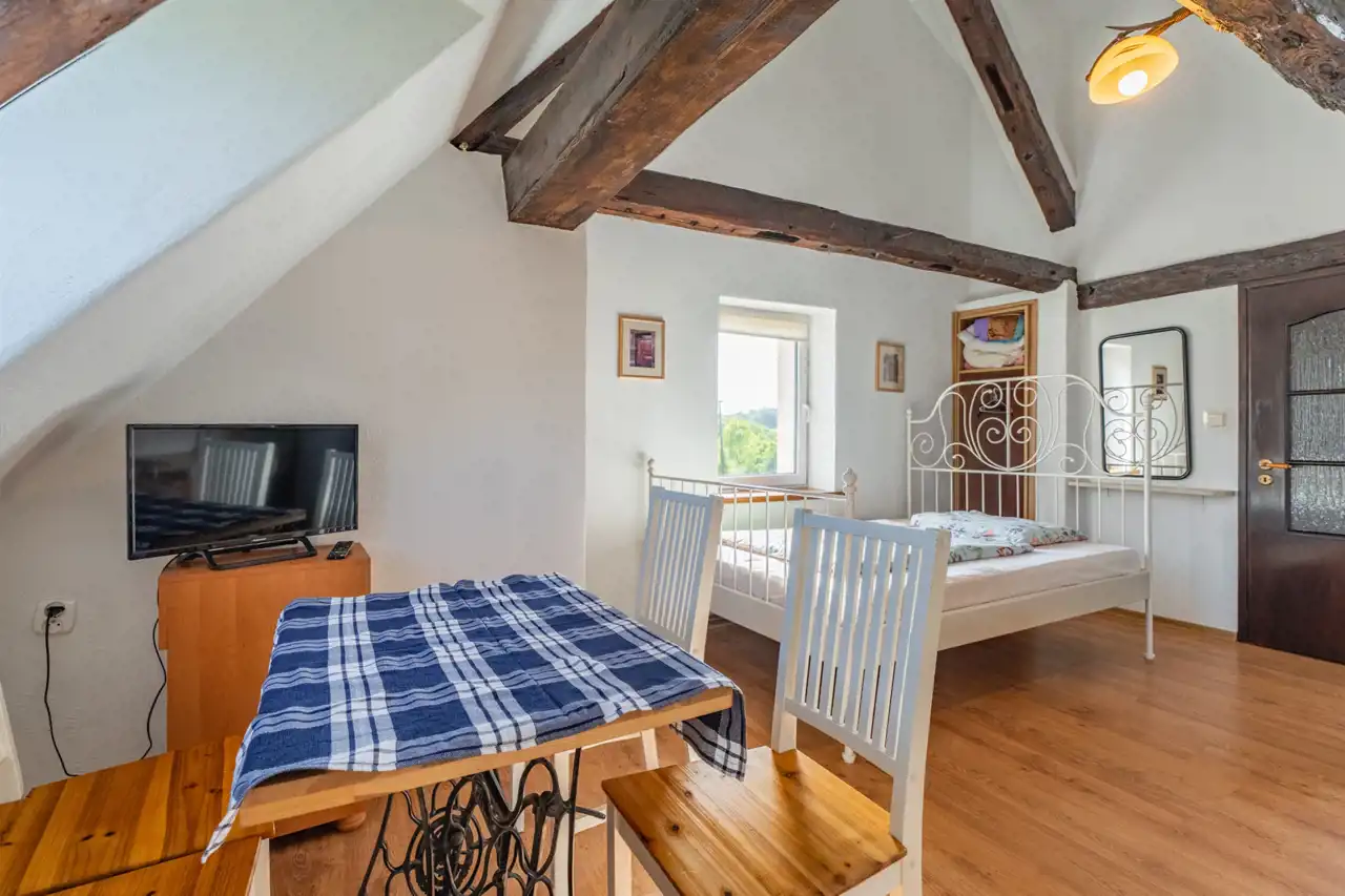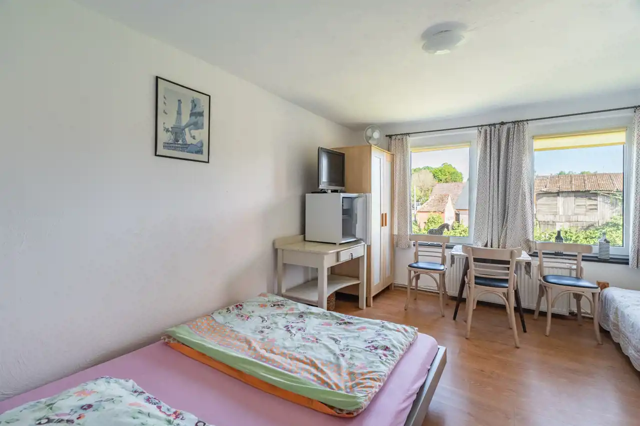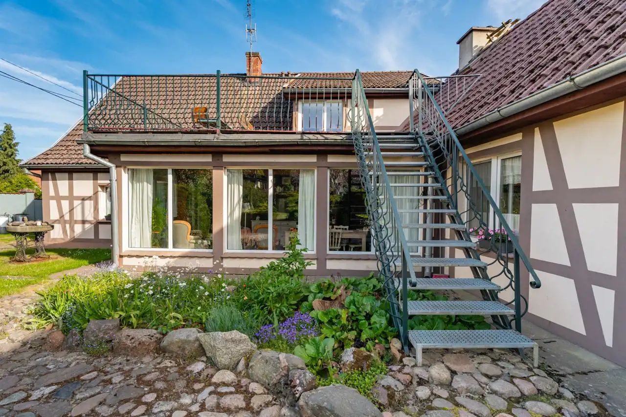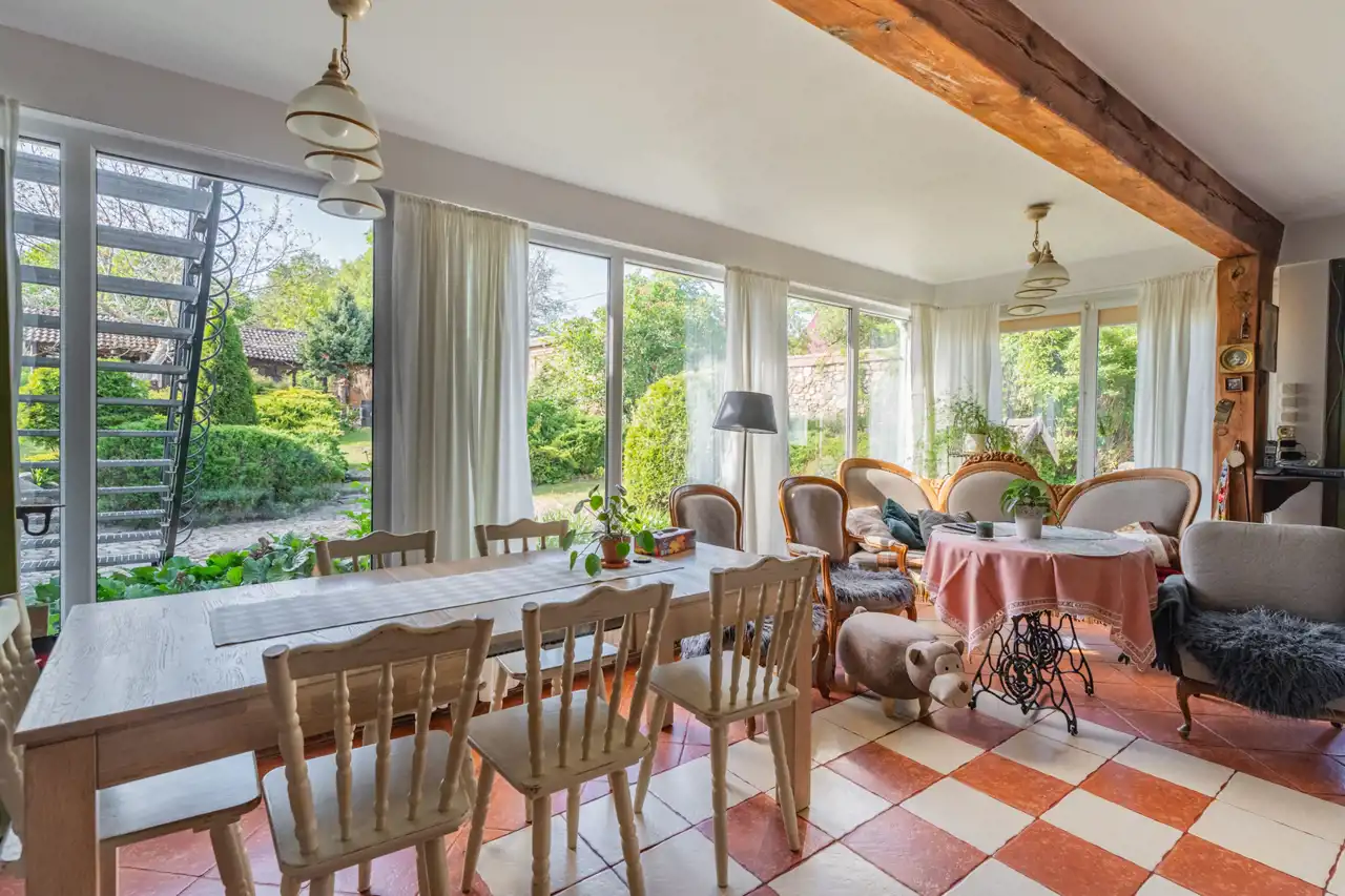W skład nieruchomości wchodzi również budynek z przeznaczeniem na organizacje przyjęć okolicznościowych na około 30 osób z kuchnia, łazienką i zadaszonym miejscem na zewnątrz.
