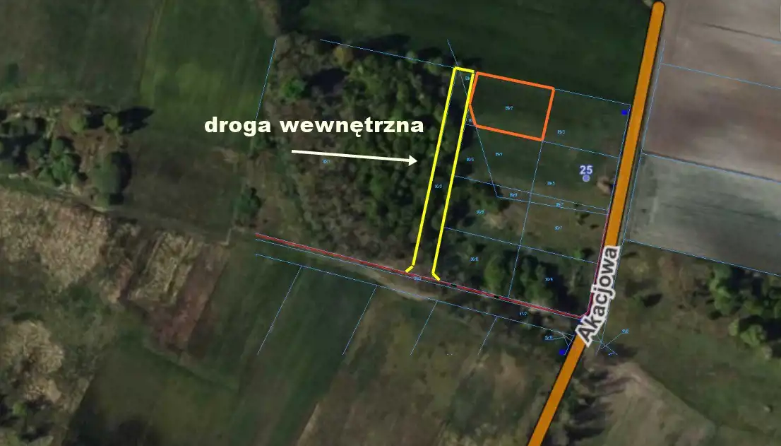 Działka posiada dostęp do drogi wewnętrznej - droga gminna - na obecny czas droga jest nieprzejezdna (zadrzewiona).