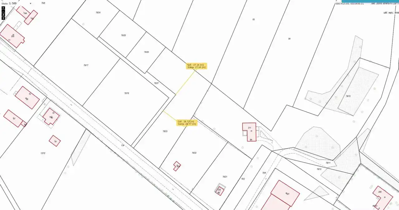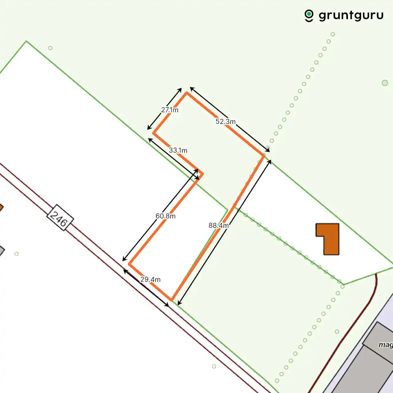Kształt działki: wielobok (lub prościej kształt litery L)