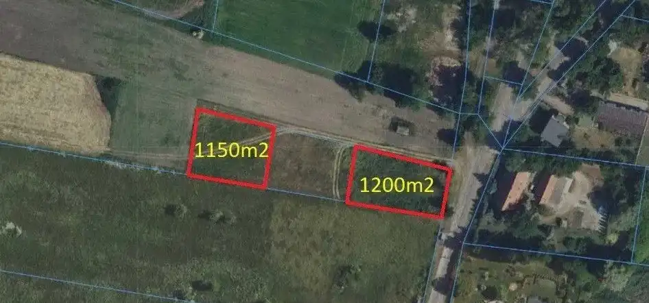 - dwie działki o powierzchni 1150 m² i 1200 m²