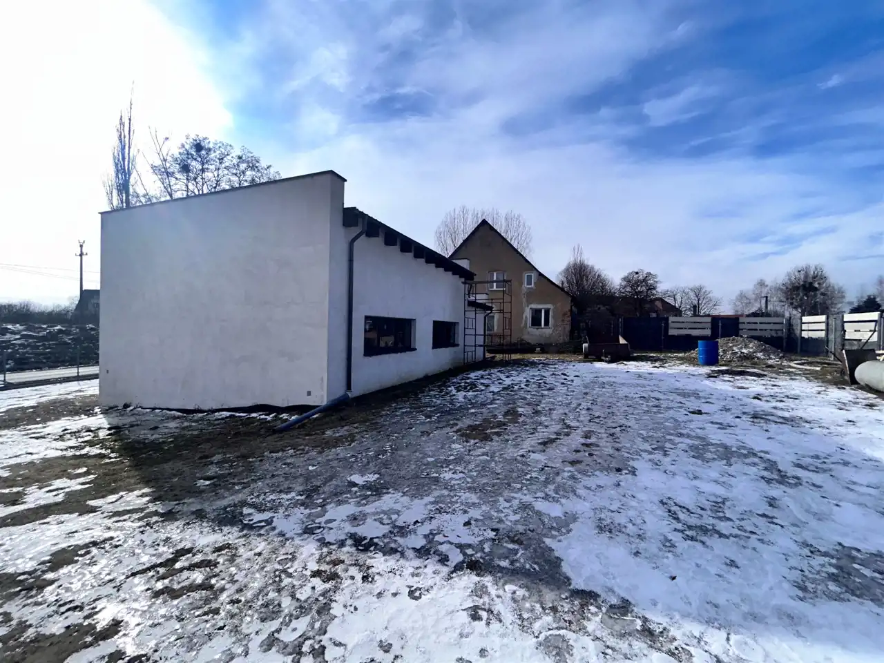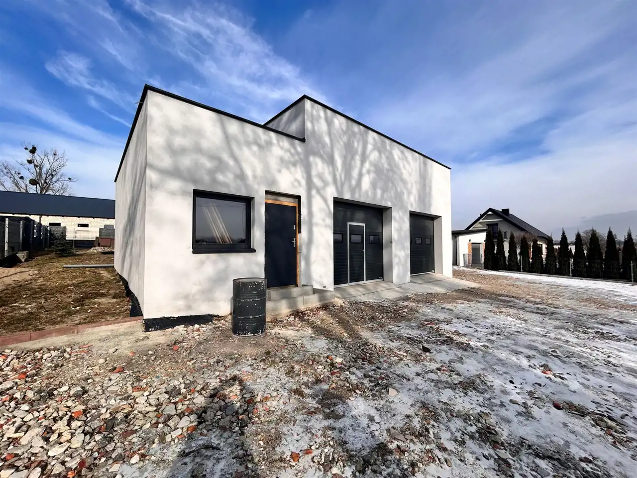 Działka na, której zlokalizowany jest lokal ma pow. 888 m2 i jest zabudowana murowanym budynkiem parterowym o pow. użytkowej ok. 88,45 m2. Budynek został wybudowany z pustaków ceramicznych. Dach delikatnie skośny, pokryty blachą trapezową. Budynek ocieplony styropianem o gr. 20 cm, otynkowany. Budynek wyposażony w instalację elektryczną, kanalizacyjną- podłączenie do sieci gminnej kanalizacyjnej oraz wodociągową- z sieci. Budynek posiada dwie duże bramy wjazdowe segmentowe. Teren z tyłu nieruchomości do zagospodarowania. Cała posesja jest ogrodzona płotem z siatki.
