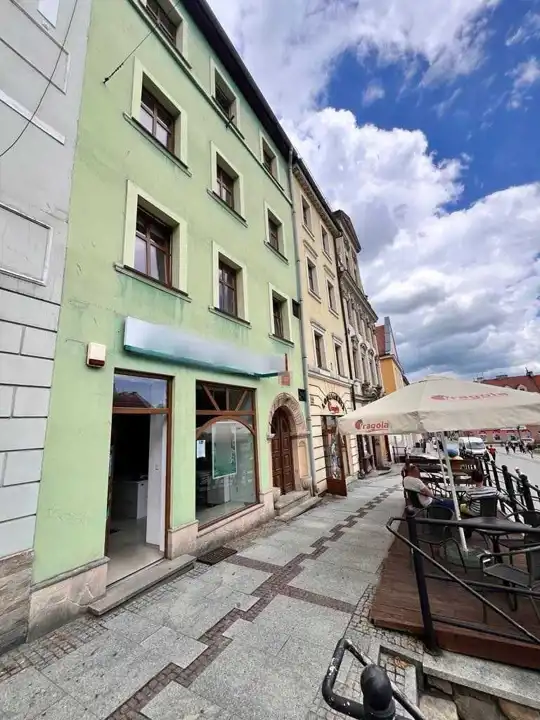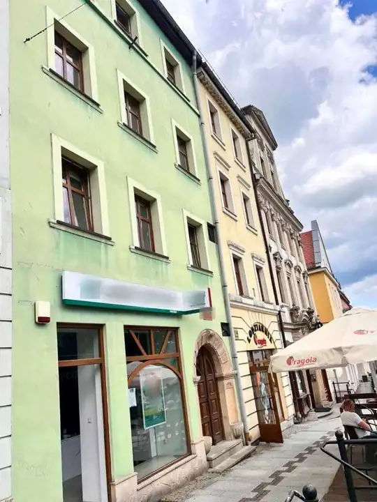 Przedstawiam Państwu ofertę sprzedaży odnowionej kamienicy w ścisłym centrum Złotoryi w ciągu handlowym. Budynek całkowicie odnowiony (oryginalne pozostały ściany skrajne budynku, stropy i wnętrze całkowicie odnowione). Powierzchnia budynku wynosi około 510m2 użytkowych. Na parterze budynku znajduje się lokalu użytkowy o powierzchni około 60m2, pierwsze piętro wykorzystywanej jest obecnie jako lokal biurowy, piętra od drugiego o czwartego wydzielono jako mieszkania (po dwa mieszkania na piętrze, łącznie pięć lokali mieszkalnych). Na ostatnim piętrze znajduje się duży, dwu-poziomowy apartament.