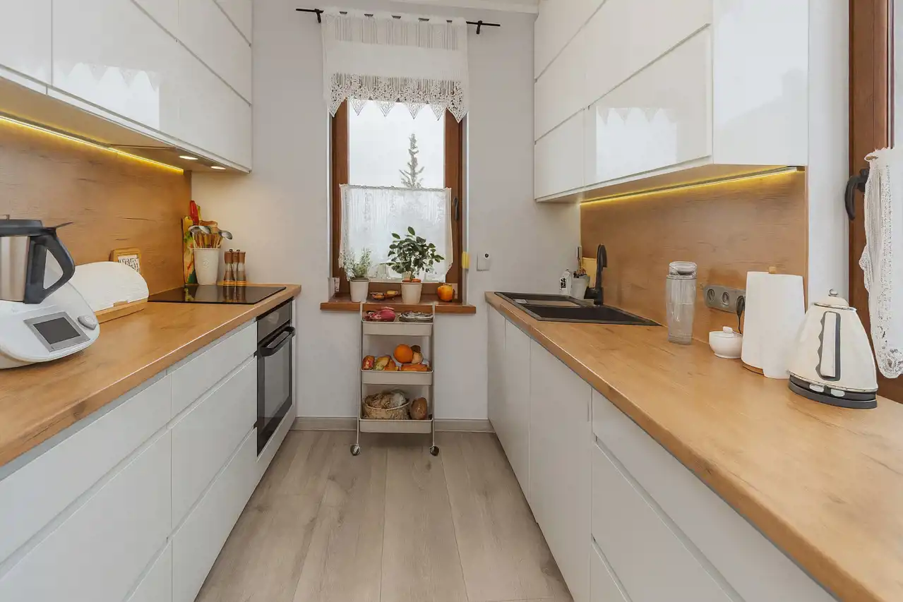 - Kuchnia z nowoczesną zabudową i wysokiej jakości sprzętem AGD