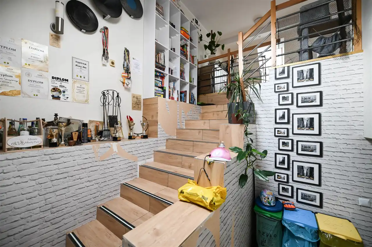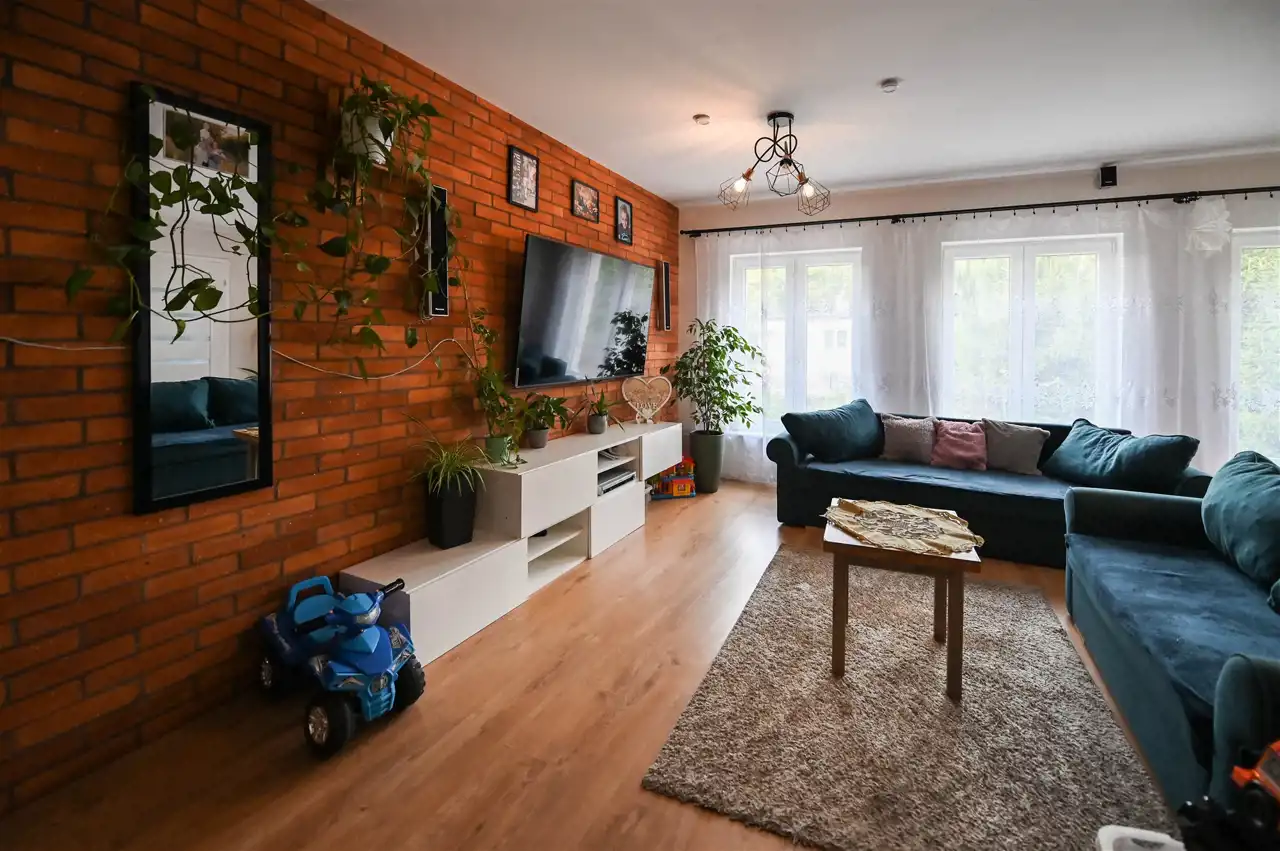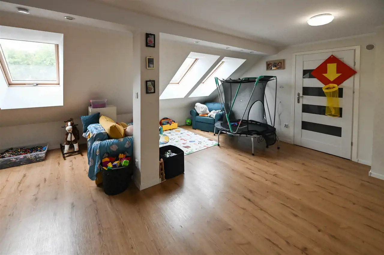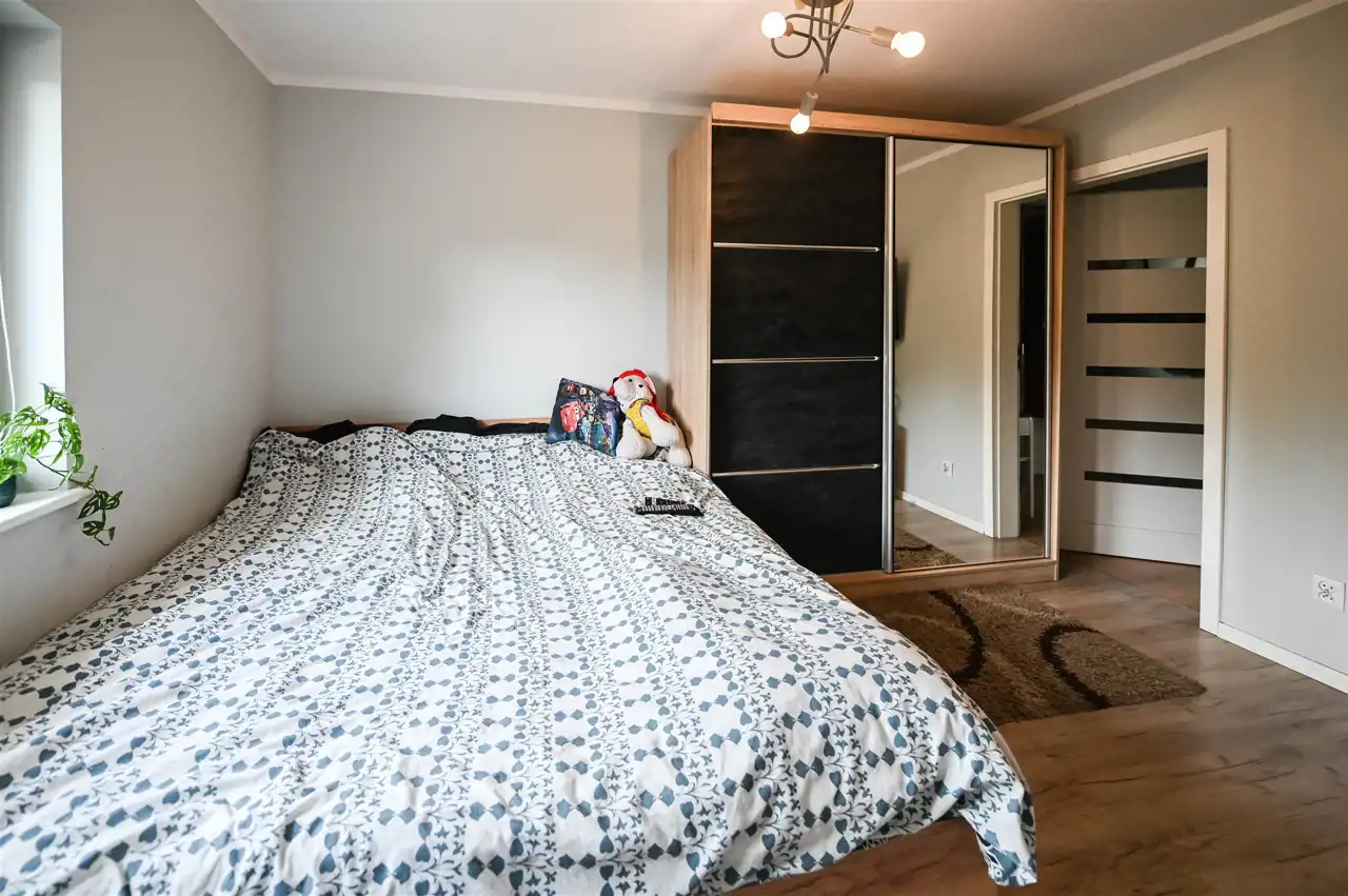 Dom idealny do zamieszkania przez dwie rodziny (niezależne części mieszkalne). Główna część mieszkalna znajduje się na pierwszym piętrze gdzie mamy ogromy salon z jadalnią, aneks kuchenny, sypialnię oraz łazienkę.