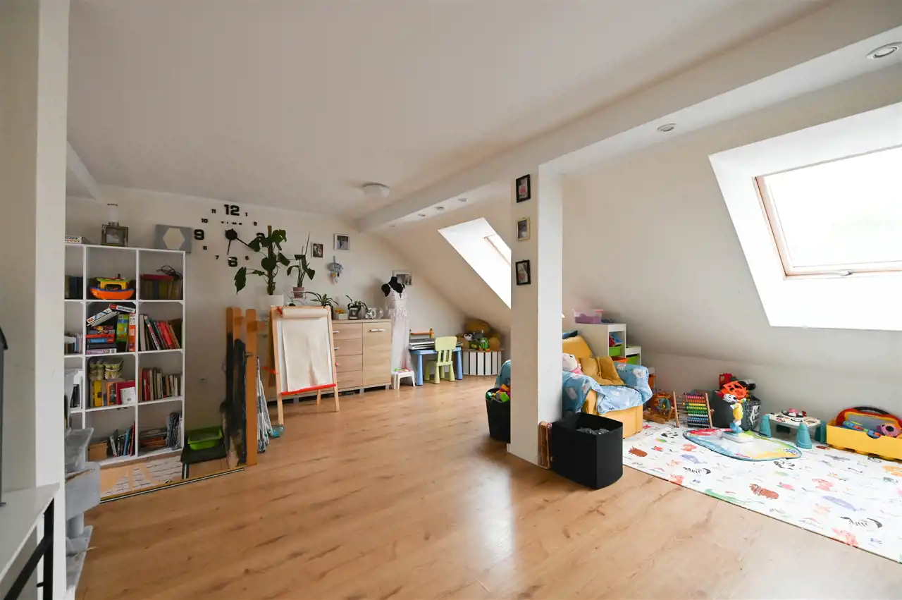 Poddasze to obecnie jedno spore otwarte pomieszczenie, sypialnia, gabinecik oraz garderoba.