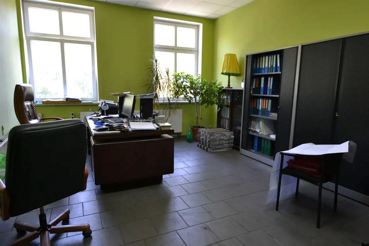 Budynek użytkowy o powierzchni około 914m2, dwu-kondygnacyjny, wykonany z cegły oraz pustaków. Powierzchnia kondygnacji wynosi około 450m2. Na parterze budynku znajdują się dwie spore hale produkcyjne (206m2 oraz 118m2) oraz klika pomieszczeń magazynowych id użytkowych. Piętro budynku składa się z jednej hali o powierzchni około 200m2 oraz pomieszczeń biurowych, socjalnych i sanitarnych. Budynek po generalnym remoncie w 2010 roku. Ogrzewanie budynku CO na paliwo węglowe.
