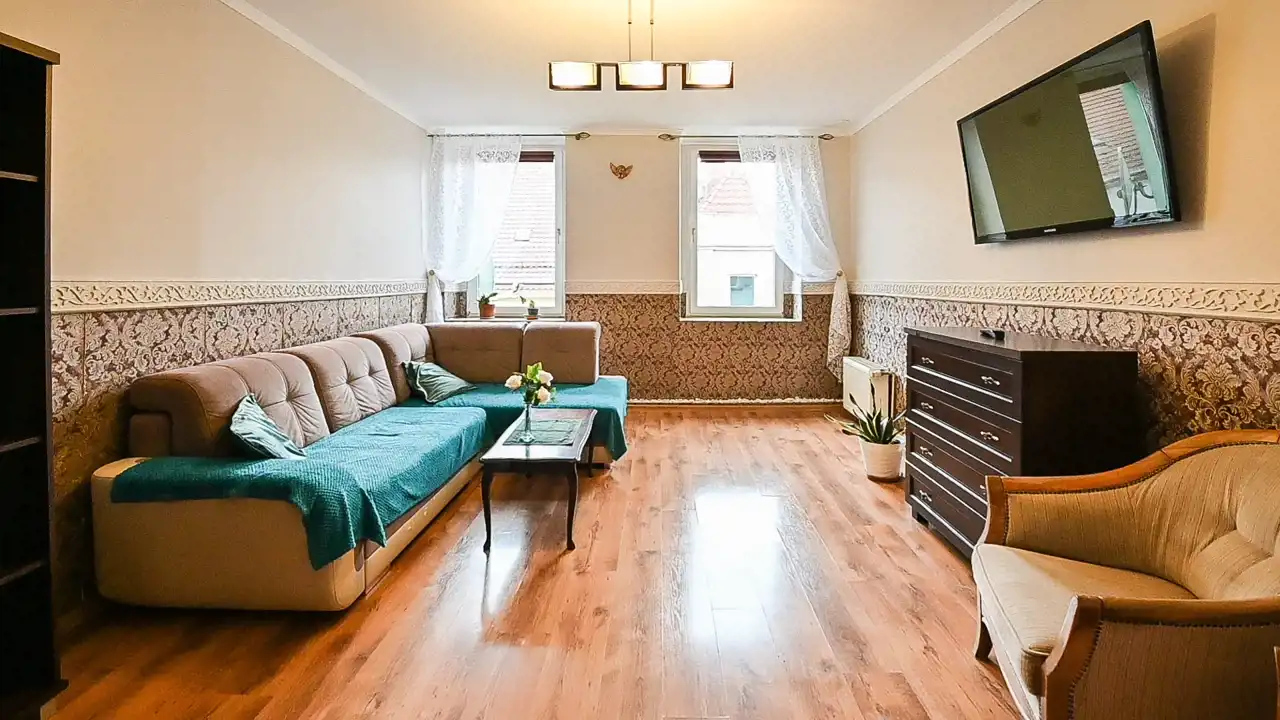 Do sprzedaży jest przyjemne mieszkanie 2-pokojowe, zlokalizowane na 2 piętrze przyzwoitej kamieniec przy ul. Mickiewicza. Mieszkanie składa się z pokoju dziennego, sypialni, łazienki, wc oraz przedpokoju. Powierzchnia użytkowa mieszkania to 63 m2. Lokal jest w dobrym stanie technicznym i jest gotowy do wprowadzenia od zaraz. Na ścianach położone gładzie gipsowe oraz tynki ozdobne, na podłogach panele, instalacja elektryczna miedziana, okna PCV, nowy piec gazowy Saunie Duval.