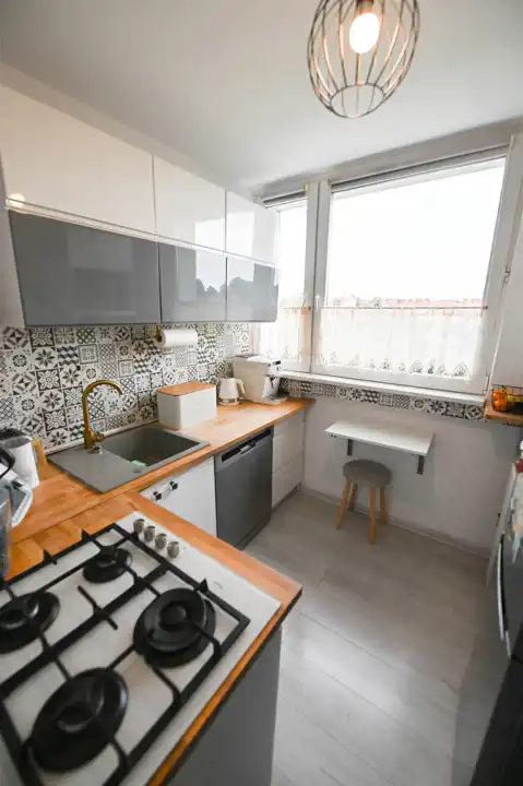 - Media Ogrzewanie: miejskie; Woda: ciepła - piecyk gazowy; Gaz: jest