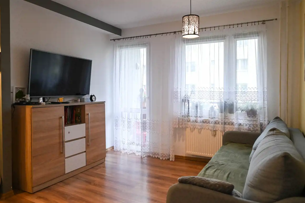 Mieszkanie jest w bardzo dobrym stanie technicznym i jest gotowe do wprowadzenia. Pokój dzienny z duży balkonem. Osobne pomieszczenie z pralką.