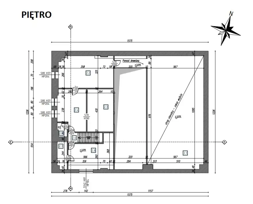 Na piętrze znaduje się pomieszczenie biurowe, pomieszczenia socjalne oraz magazynek. Powierzchnia piętra wynosi 58,32m2.
