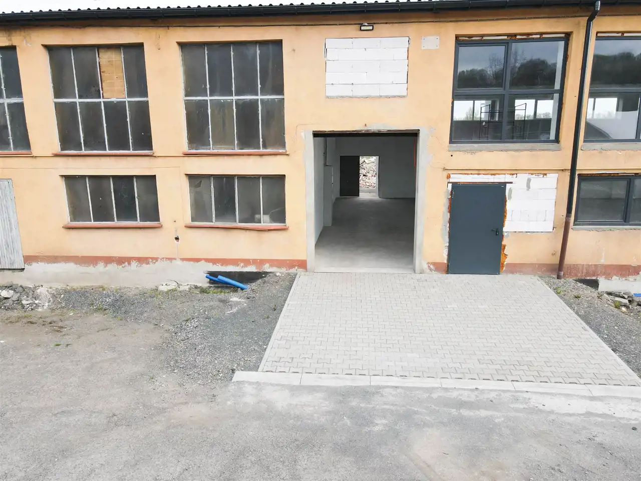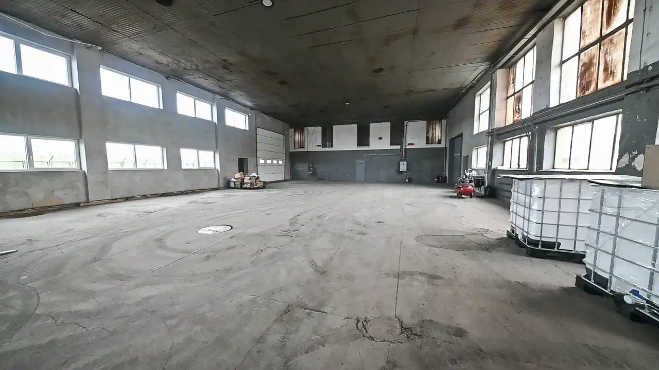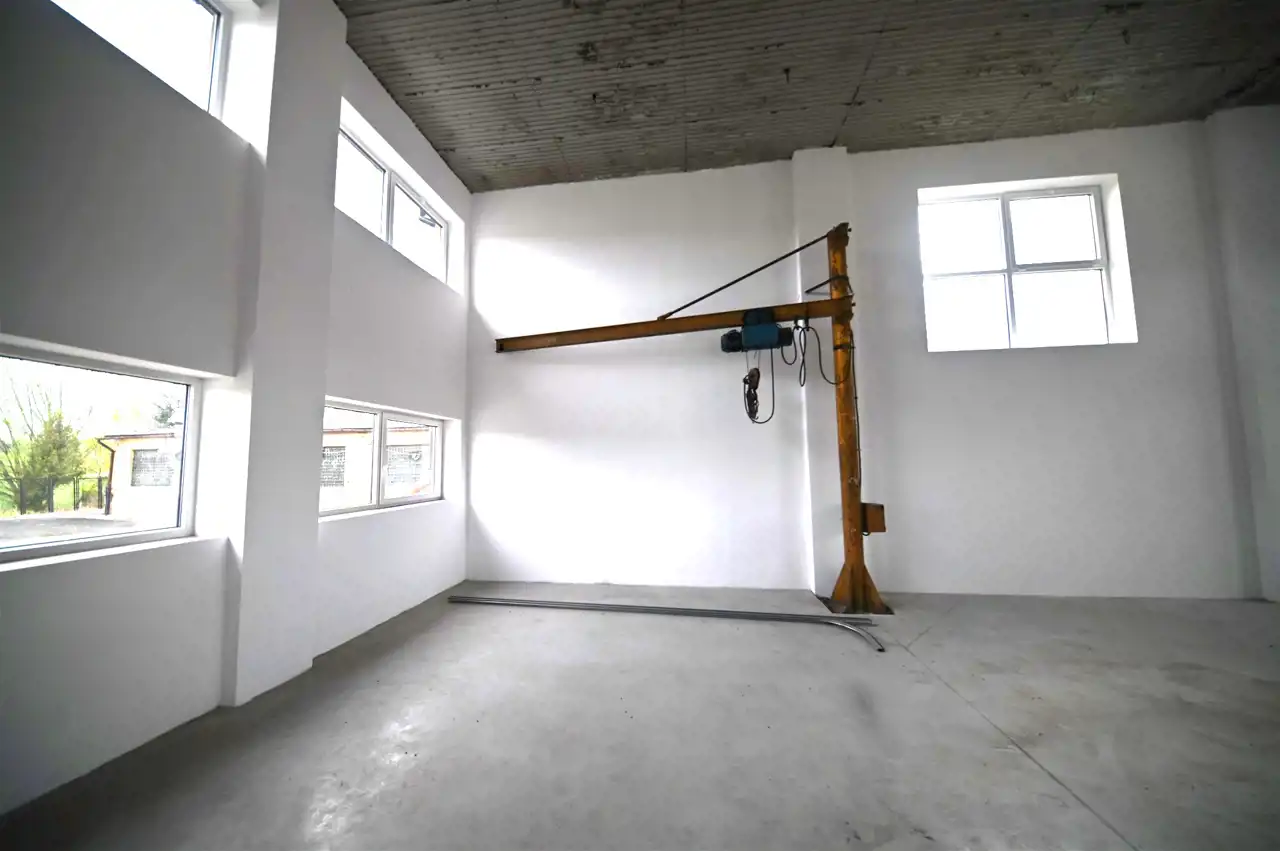 Większa hala świeżo po remoncie, posiada wymiary 14,5m2 x 44,5m. Wysokość 5,7m. Bramy od frontu segmentowe sterowane elektrycznie o wymiarach 2,2m x 3,2m i 2,3m x 3,2m, brama od tyłu segmentowa sterowana elektrycznie, o wymiarach 4,2m x 4,5m.