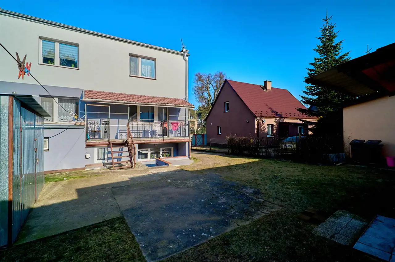 Na sprzedaż dom wolnostojący o funkcjonalnym układzie, który umożliwia podział na trzy niezależne mieszkania – po jednym na każdej kondygnacji. Dodatkowo w budynku gospodarczym za domem można wygospodarować czwarte mieszkanie.