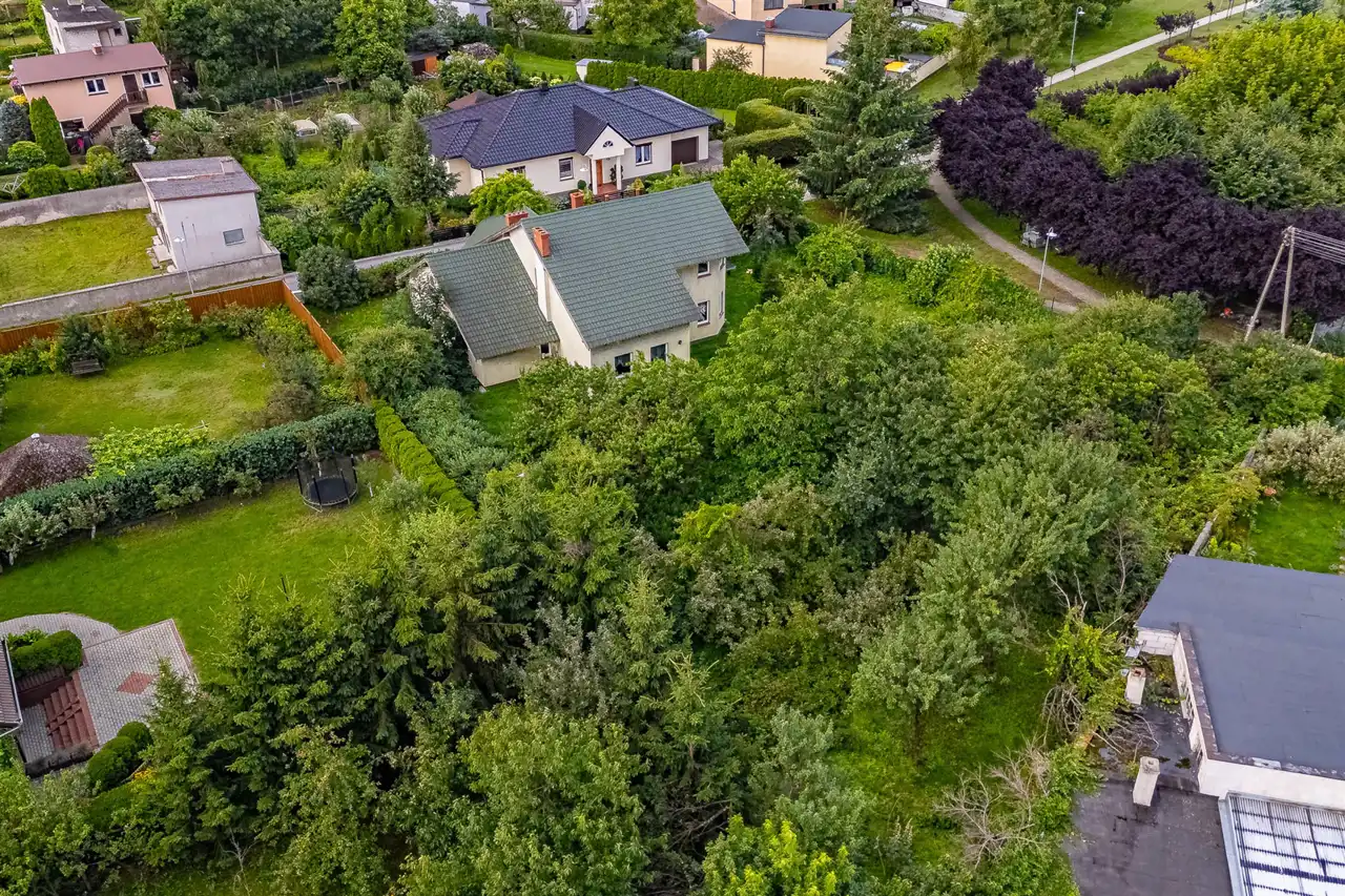 Ogromnym atutem nieruchomości jest duża działka o powierzchni aż 1702 m² to więcej niż standardowe działki w okolicy. Liczne nasadzenia drzew owocowych i krzewów ozdobnych tworzą naturalny klimat ogrodu, dając cień i prywatność. To idealne miejsce na ogród warzywny, plac zabaw, altanę czy nawet basen.