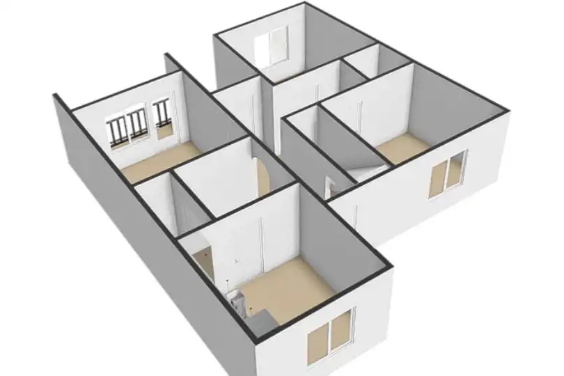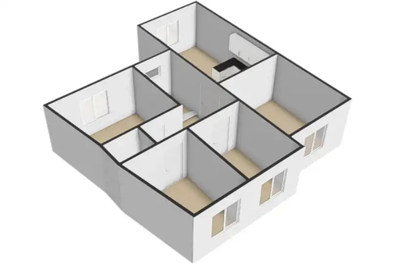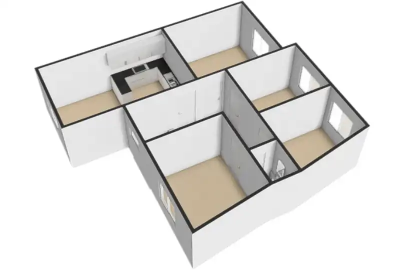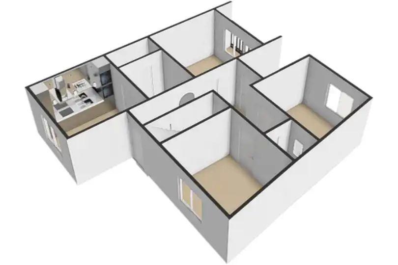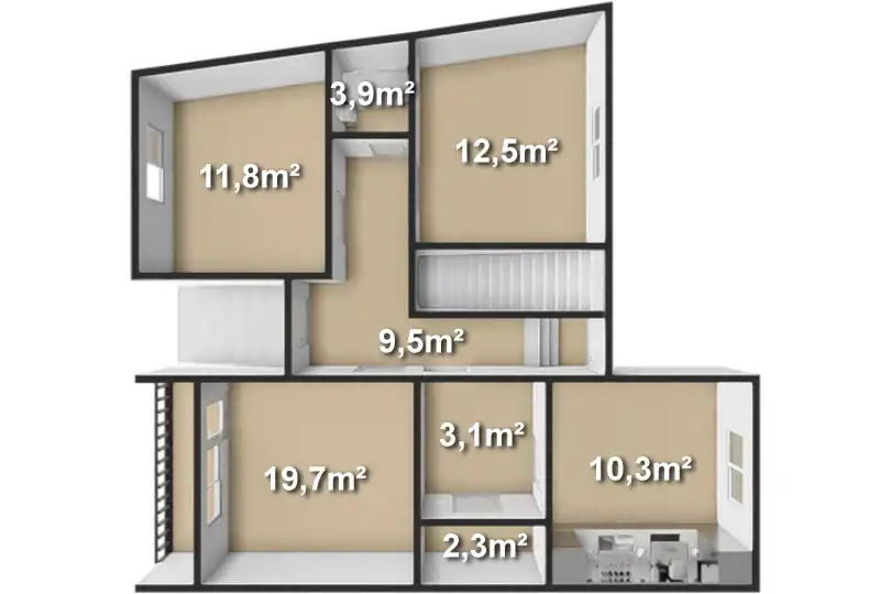- Trzy przestronne pokoje (19,7 m2, 12,5 m2 oraz 11,8 m2), które mogą pełnić funkcję gabinetów lub salonu i sypialni.