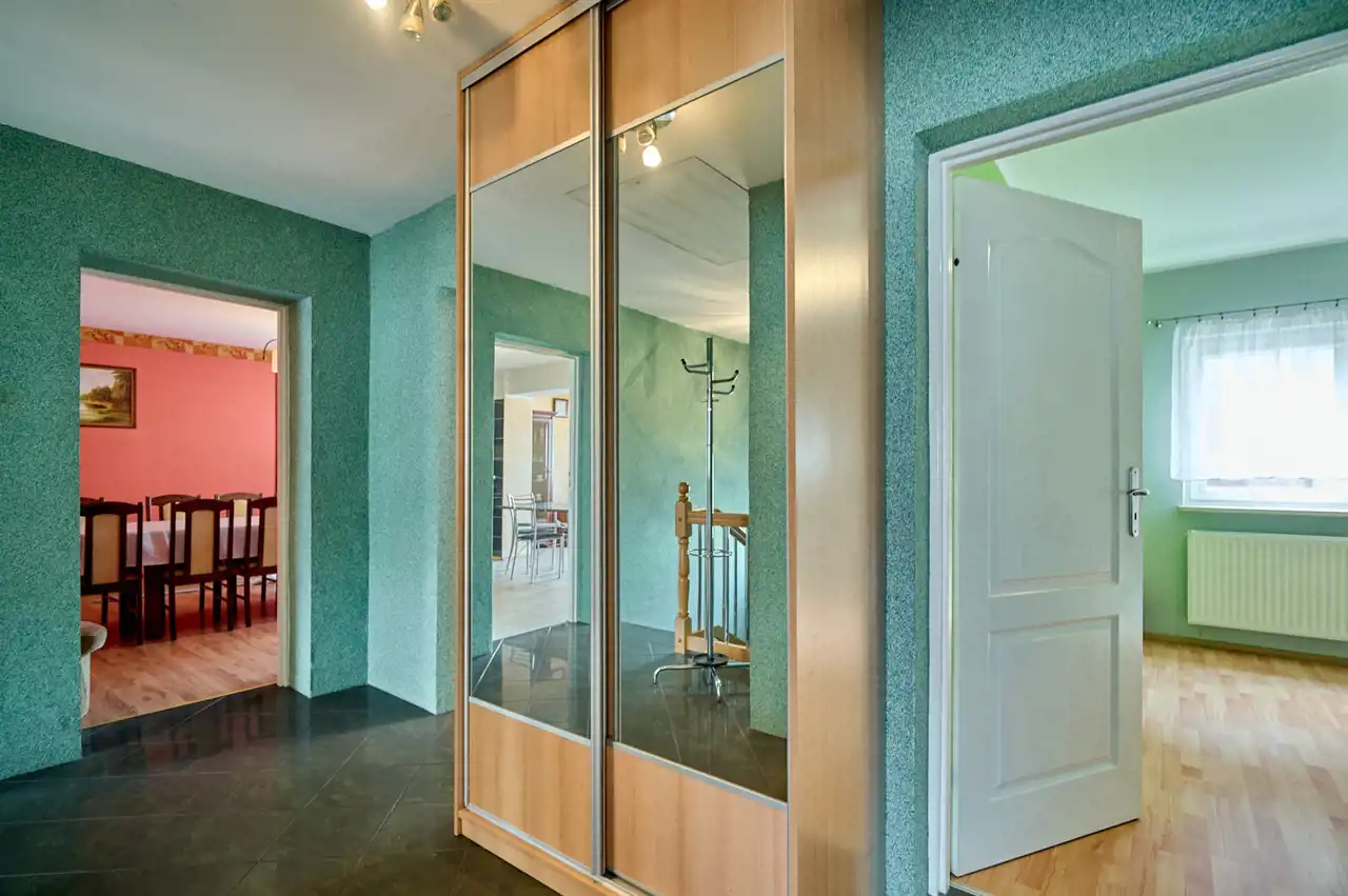 - Biznes i dom w jednym: Parter idealnie nadaje się na nieuciążliwą działalność gospodarczą (gabinet, biuro projektowe, kancelarię), podczas gdy piętro pozostaje komfortową przestrzenią mieszkalną.
