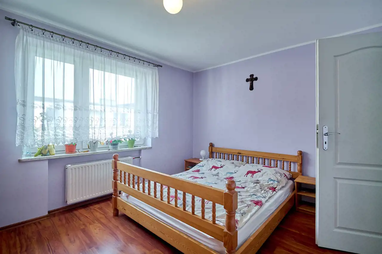 - Solidne podstawy: Budynek jest ocieplony, wyposażony w okna PCV oraz system ogrzewania z piecem węglowym, co stanowi solidną bazę do modernizacji według nowoczesnych standardów.
