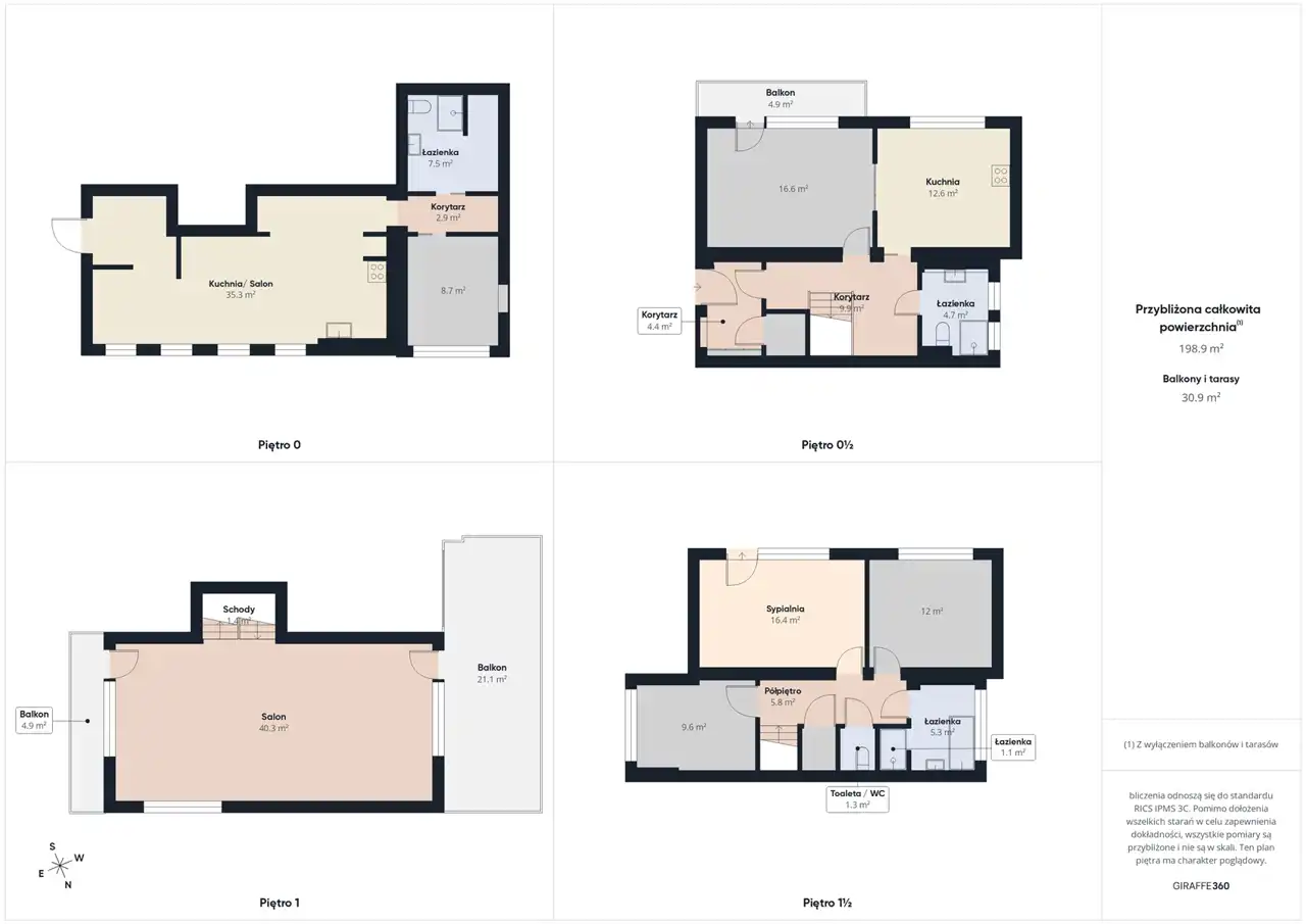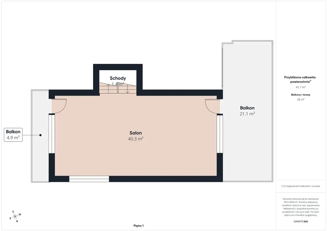 - Salon o pow. 40,3 m2 z wyjściem na taras o pow. 21 m2 oraz balkon o pow. 4,9 m2