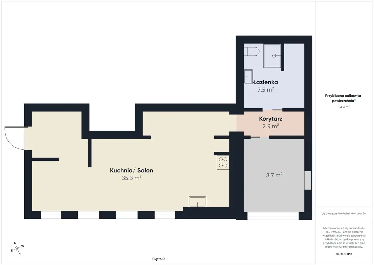 - Salon z aneksem kuchennym o pow. 35,3 m2