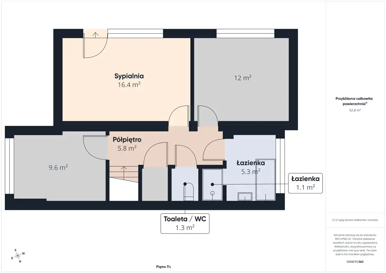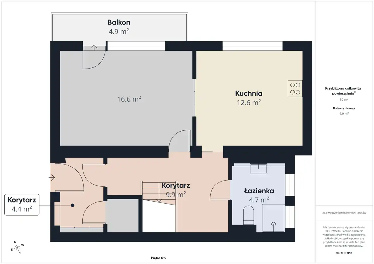 - Pokój o pow. 16,6 m2 z wyjściem na balkon o pow. 4,9 m2
