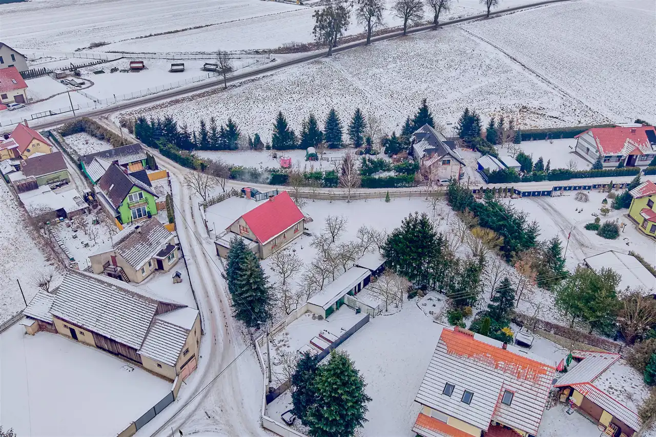 Choć sam dom daje poczucie intymności, szybko dojedziesz do pełnej oferty usług jakie daje miasto – szkół, sklepów, aptek, instytucji publicznych i kulturalnych. To ważne szczególnie dla rodzin i osób ceniących wygodę. Choć sama miejscowość dzięki dobrze wyposażonej szkole oraz marketowi Dino pozwala wygodnie funkcjonować bez konieczności dojazdów.