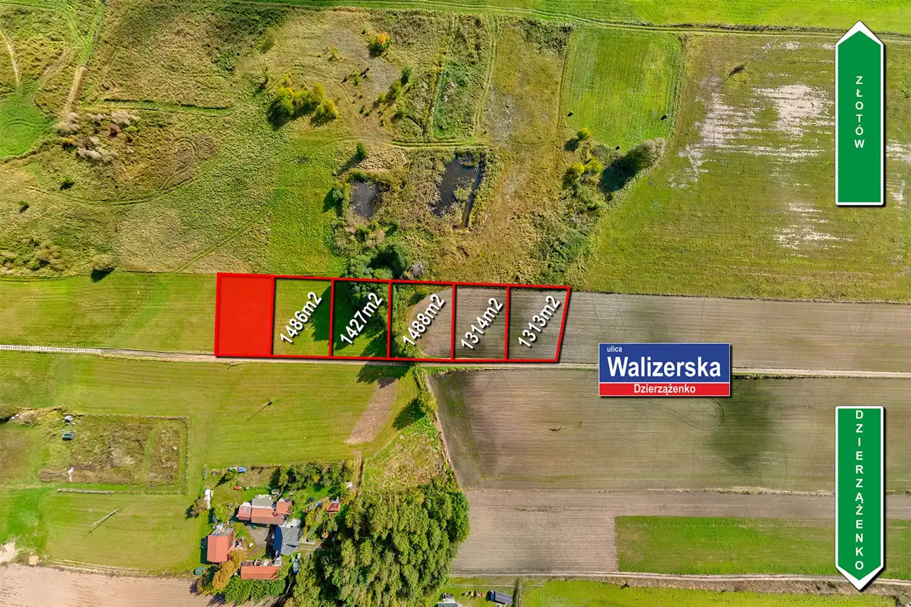 Zapraszam do zakupu działek budowlanych o pow. 1313m2, 1314m2, 1392m2, 1427m2, 1486m2 i 1488m2 położonych przy ul. Walizerskiej w Dzierzążenku