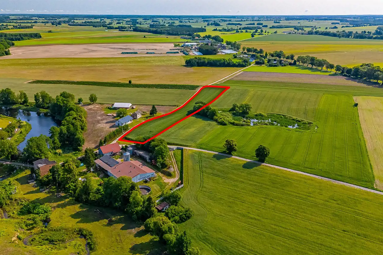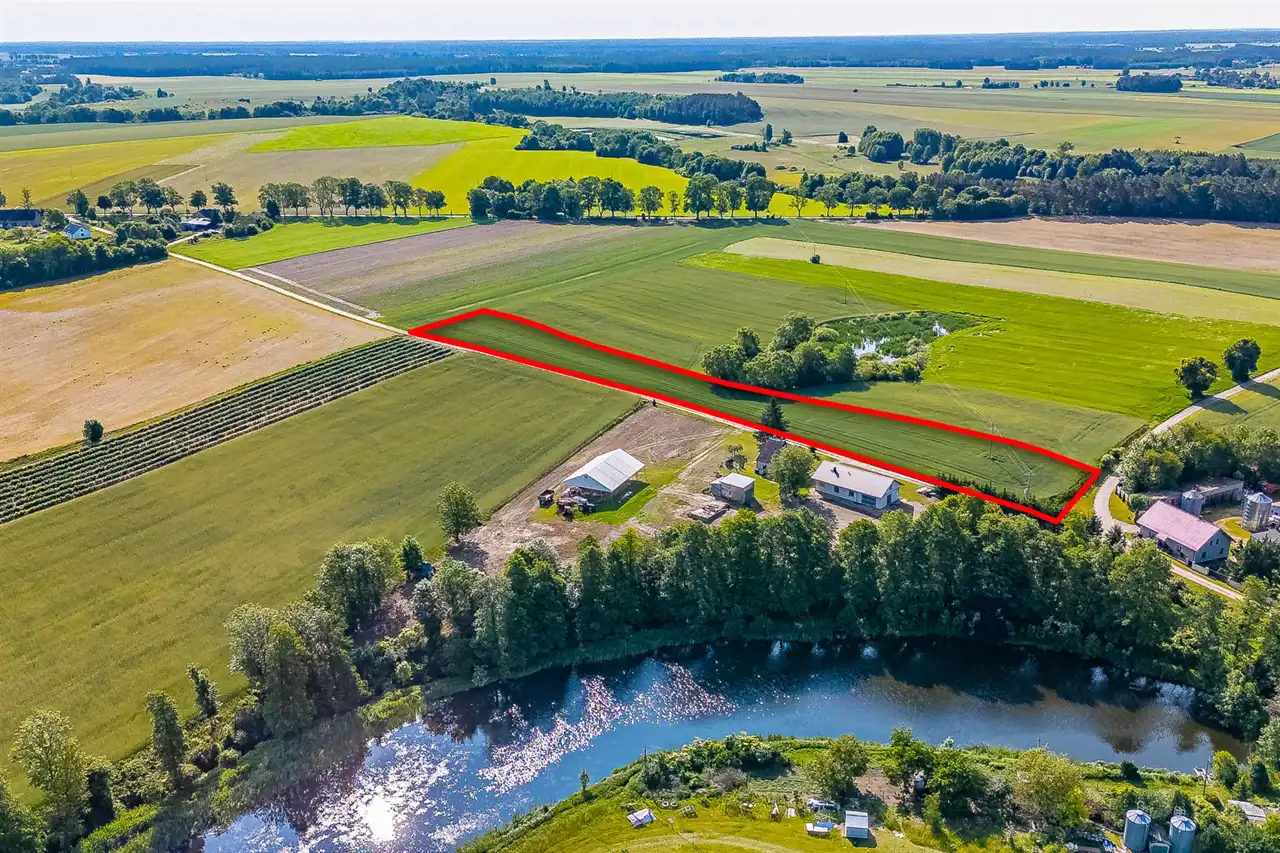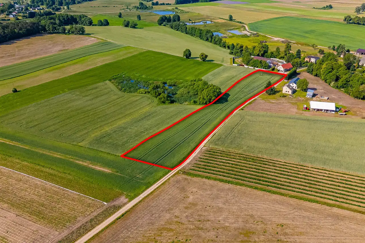 Kształt działki, ułożenie względem drogi gminnej, dostęp do mediów i sąsiadujące zabudowania powodują, że idealnie nadaje się do podziału na mniejsze działki budowlane.