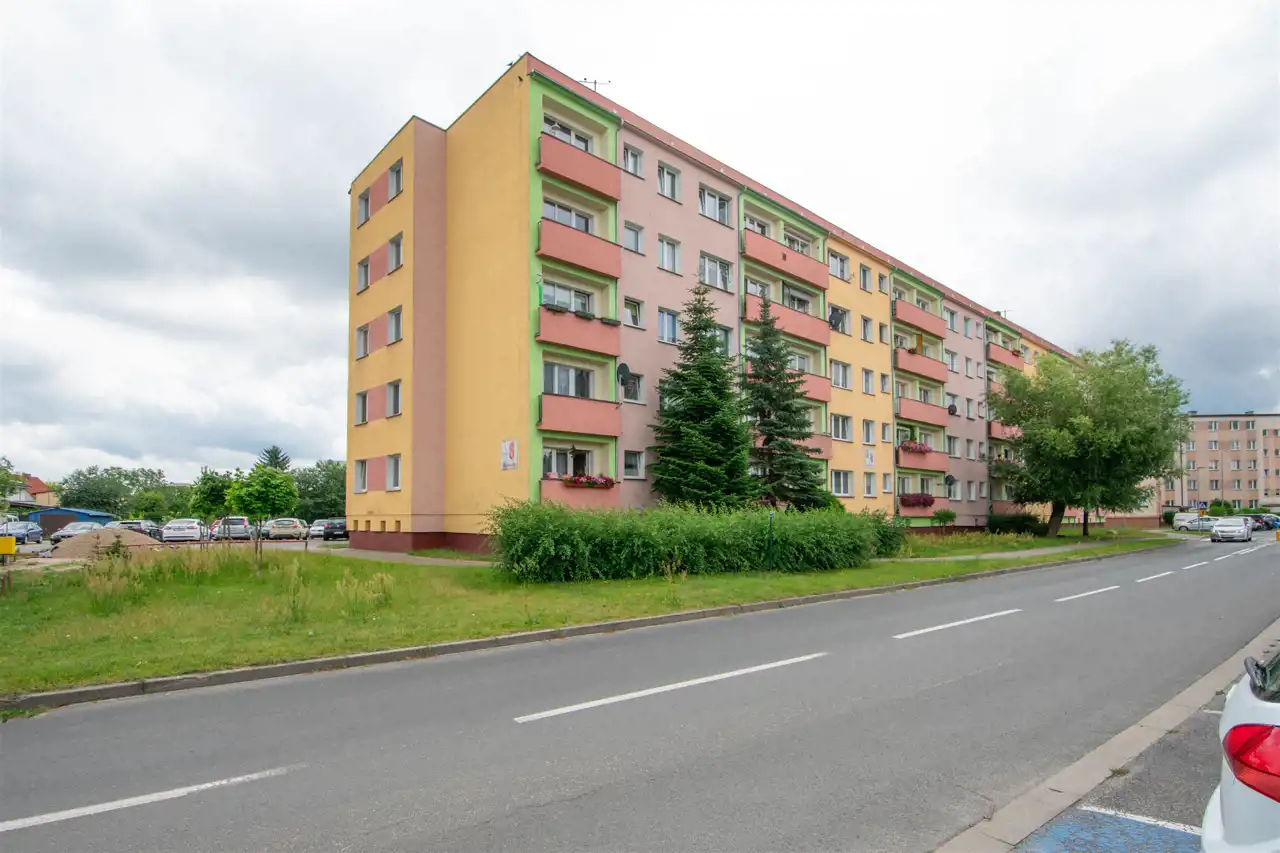 Mieszkanie o powierzchni 49,70 m² znajduje się na trzecim piętrze czteropiętrowego budynku z 1970 roku.