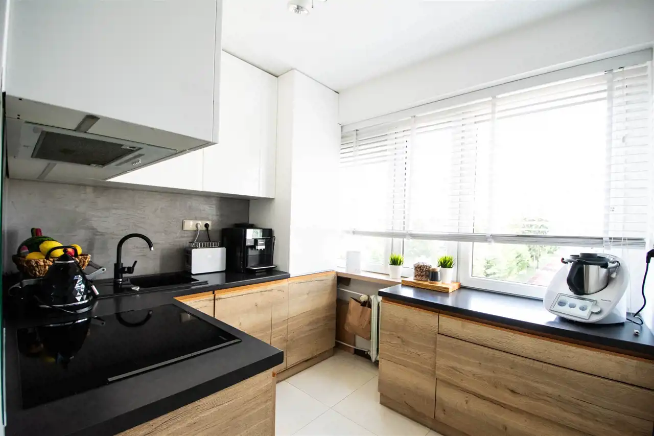 - oddzielna, stylowa i słoneczna kuchnia z szafkami stojącymi, wiszącymi oraz sprzętami w zabudowie;