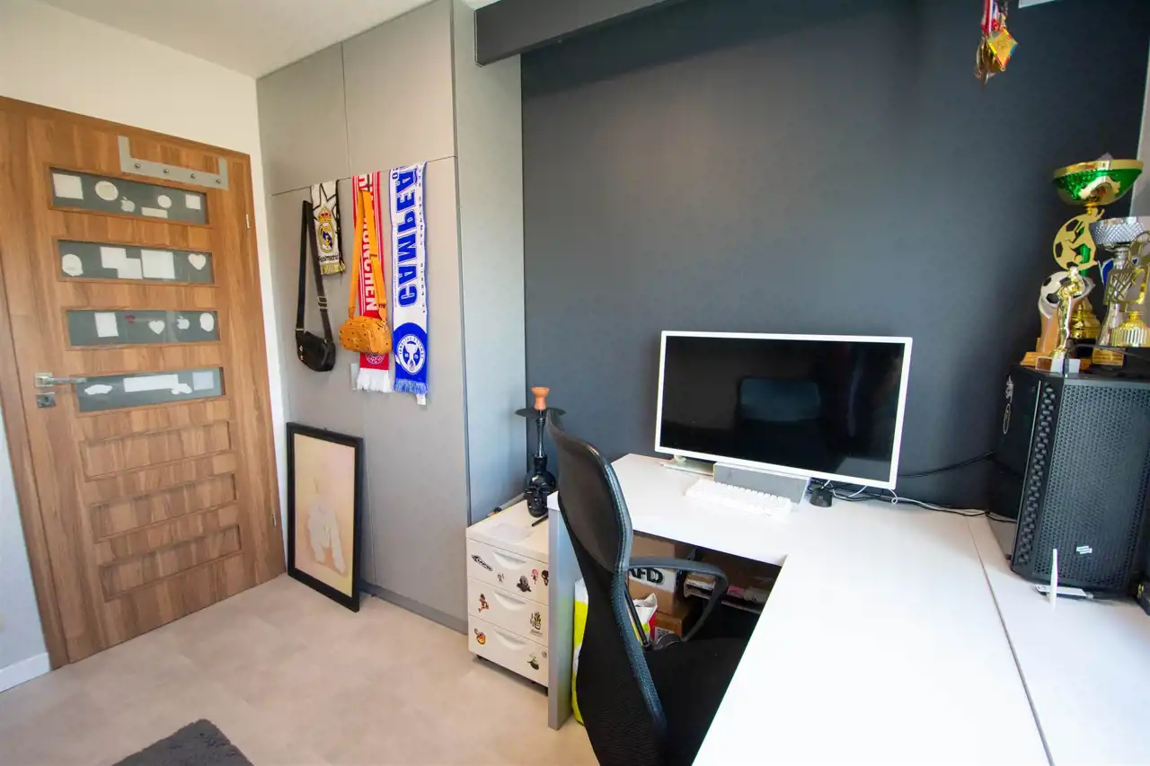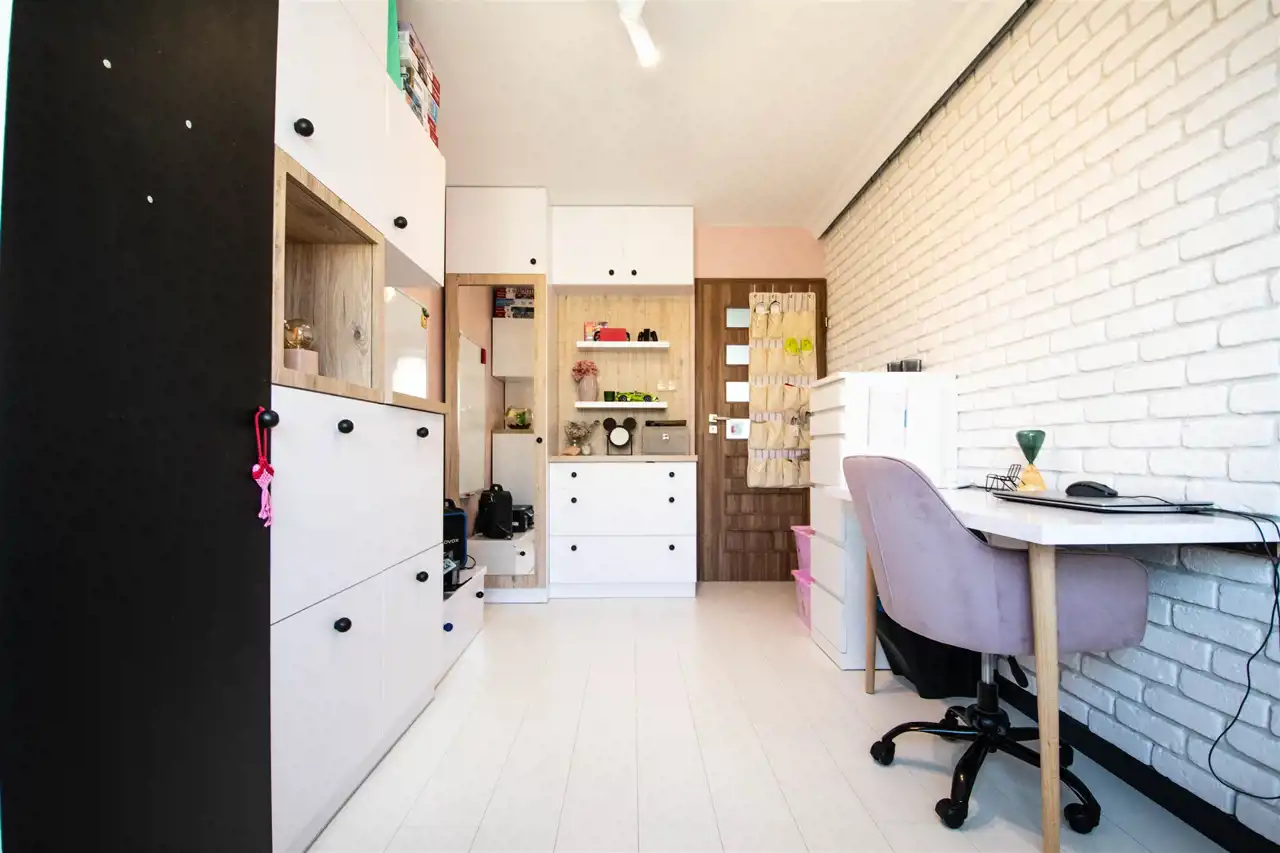 - dwóch pokoi stanowiących obecnie przestrzeń dla dzieci, które są doskonale doświetlone przez duże okna; powierzchnia tych pokoi stwarza możliwość zagospodarowania ich również pod sypialnię;