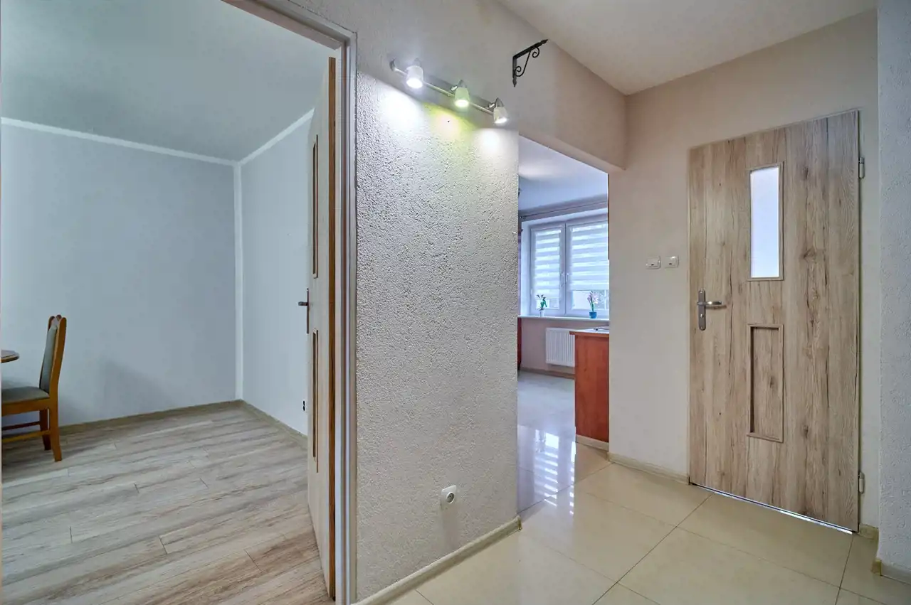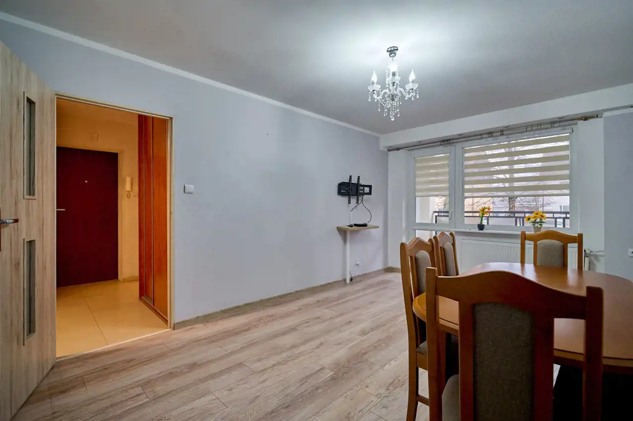 Funkcjonalny, dwustronny układ, mieszkanie jasne i ciepłe.