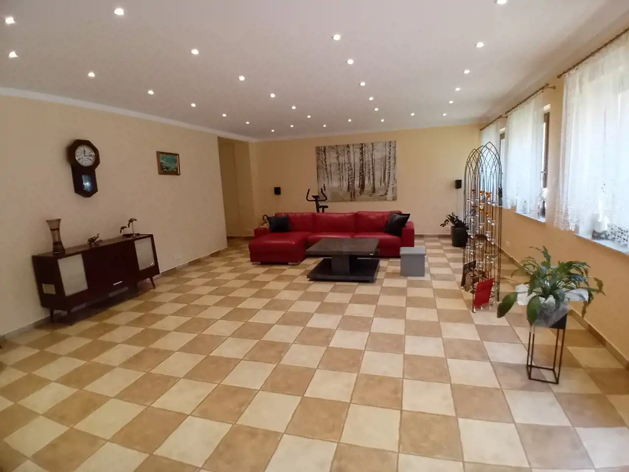 Dom o powierzchni użytkowej 224m2, 5 pokoi, kuchnia, 3 łazienki , taras , ogródek warzywny , wysokość pomieszczeń 2,60m , podłogi –kafle i panele podłogowe. Bardzo wygodny dom parterowy , z możliwością adaptacji części poddasza. Dom składa się dużego salonu, holu, kuchni z jadalnią, pokoju dziennego, sypialni, garderoby, pokoju dziecięcego lub gościnnego, małej siłowni, z dużej łazienki i trzech toalet, jedna z nich znajduje się na zewnątrz. Na terenie posesji nowa murowana wiata garażowa na dwa samochody.