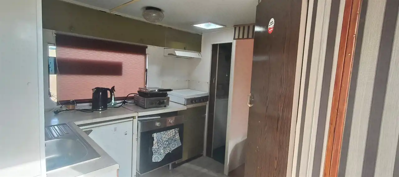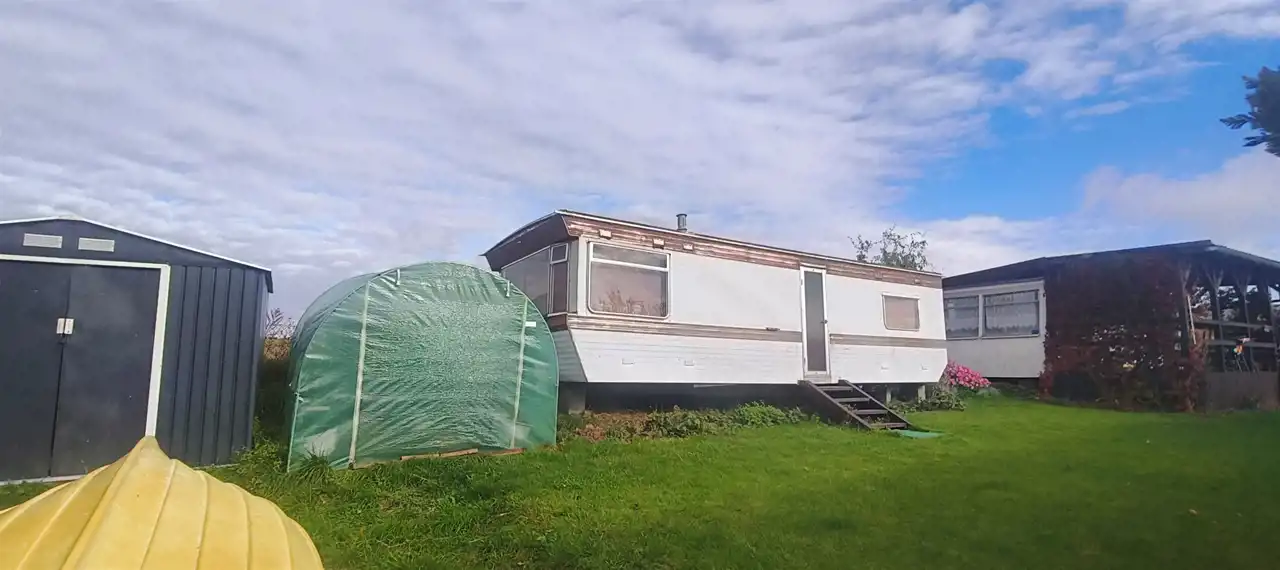 Jeden z domków ocieplony, z tarasem, wyposażony w klimatyzator, drugi typowy kontener.