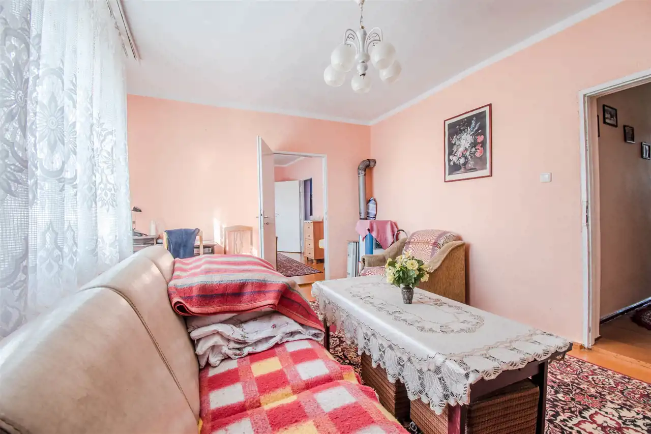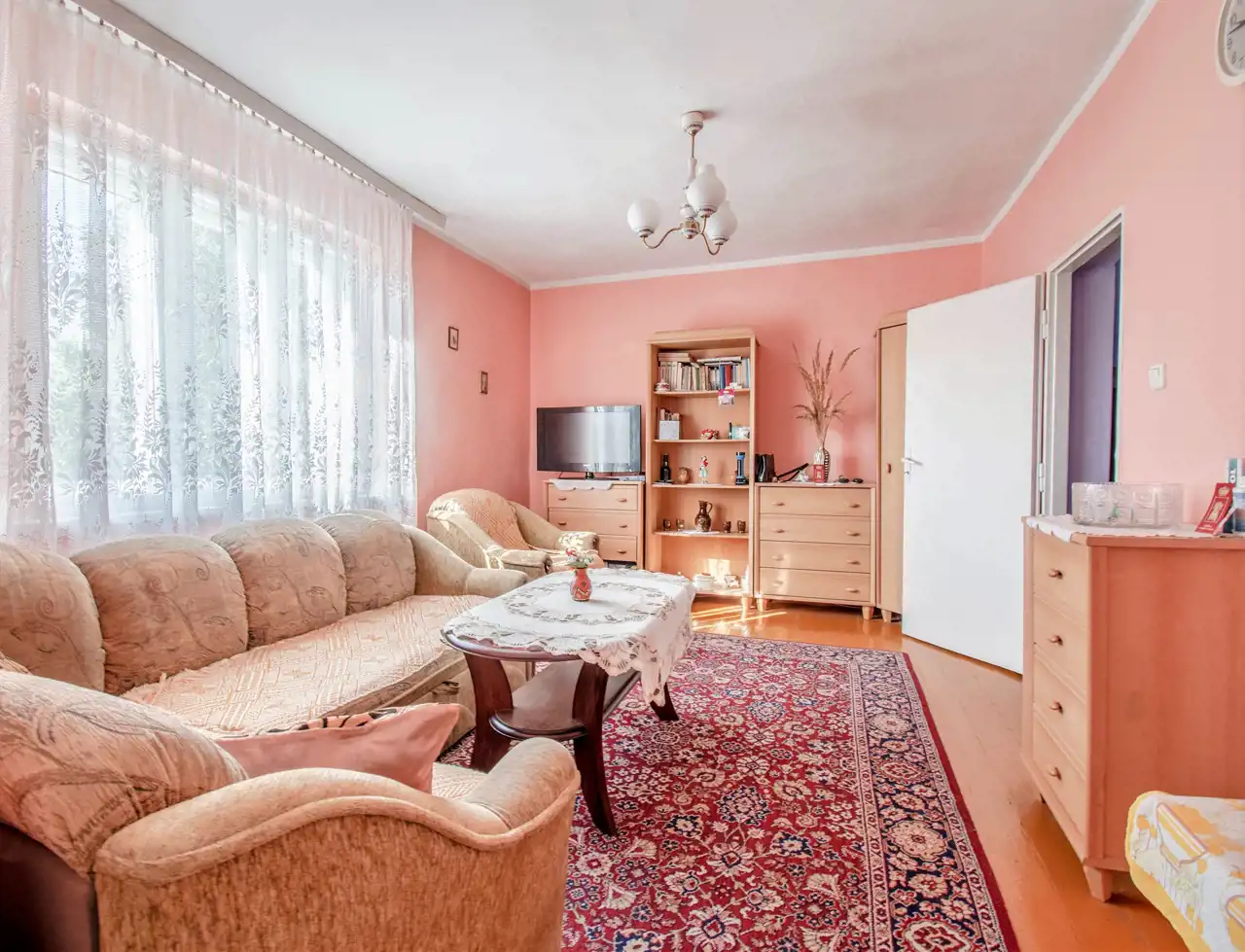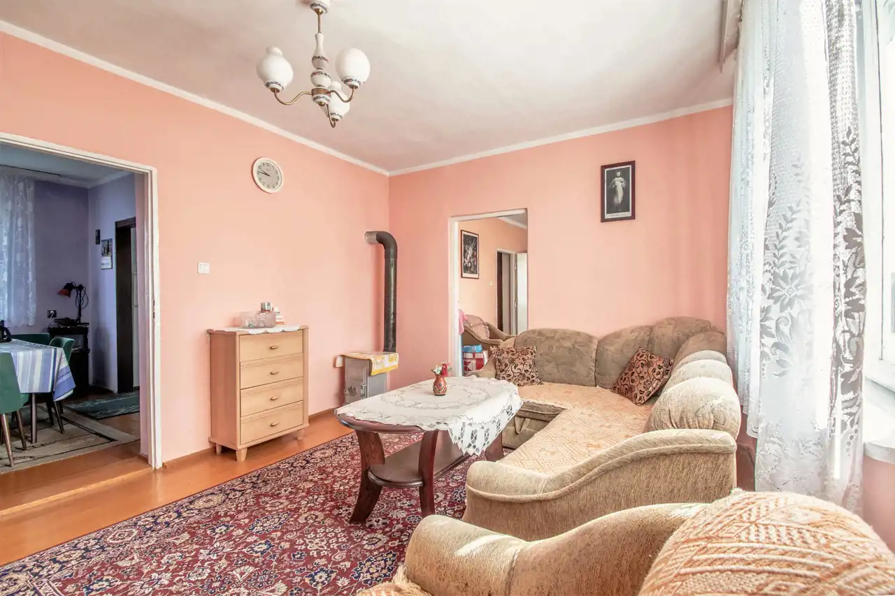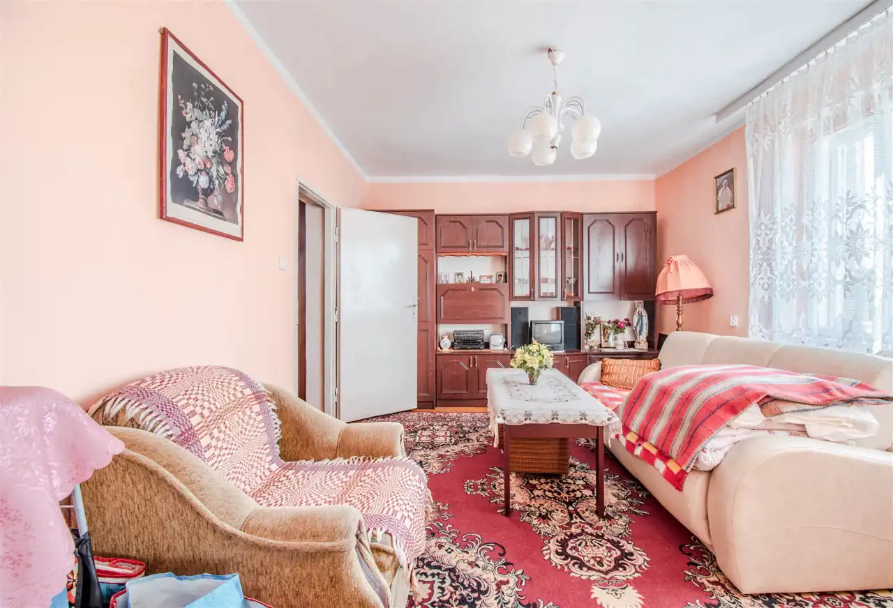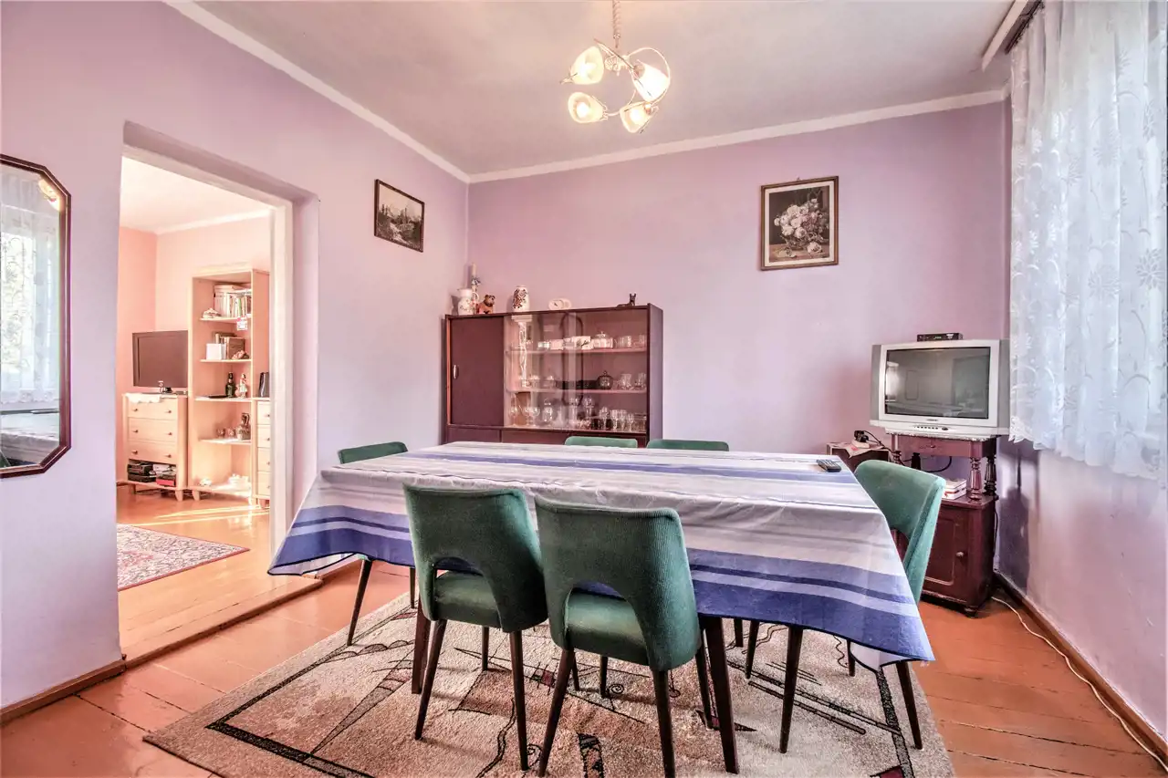 1. Dom wolnostojący, częściowo podpiwniczony, wykonany metodą tradycyjną z czerwonej cegły w latach 60-tych. Nieruchomość o powierzchni użytkowej blisko 71 m2, dodatkowo do zagospodarowania wysokie poddasze o wymiarach po podłodze 10m x 8m. Powierzchni zabudowy 80 m2.