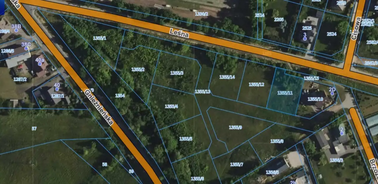 Działka znajduje się u zbiegu ulic Leśnej i Gnieźnińskiej w Żninie.