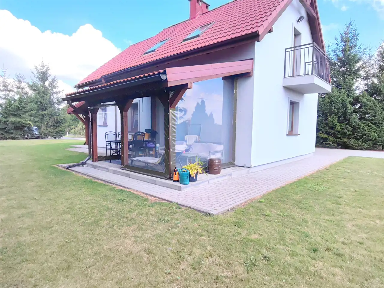 Salon z wyjściem na zadaszony taras, idealny do wypoczynku i spotkań