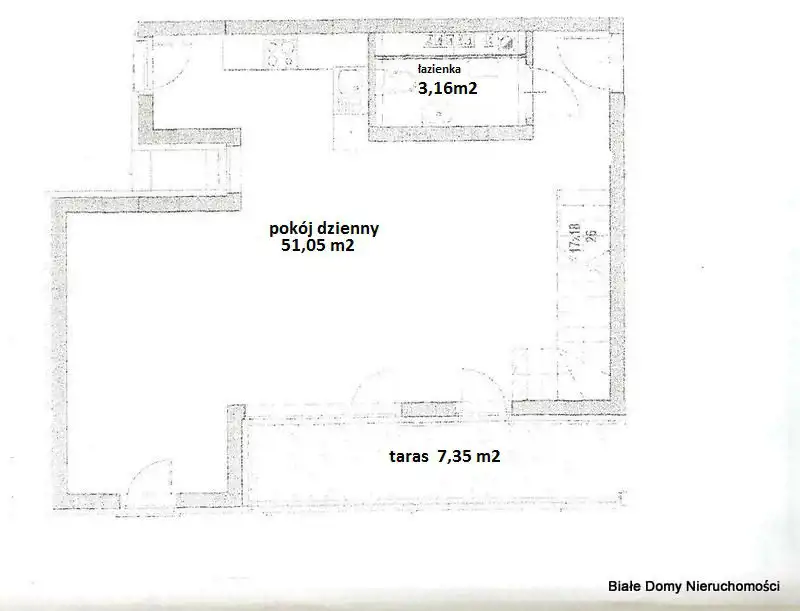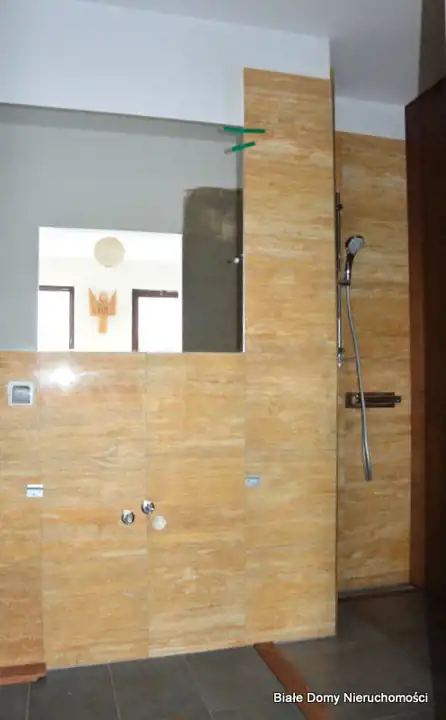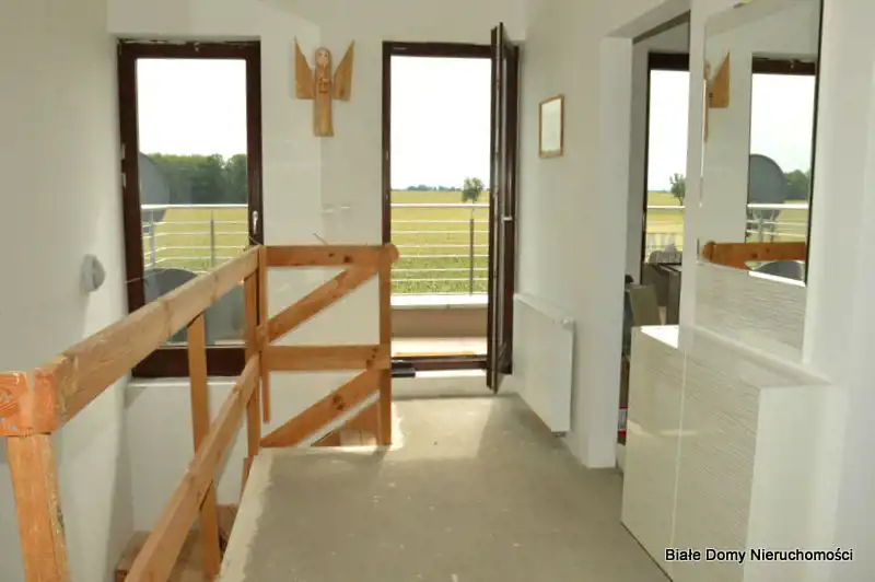 W salonie i sypialni drewniana podłoga, okna drewniane, na piętrze częściowo wykończona łazienka. W salonie klimatyzacja. W cenie mieszkania pozostają materiały potrzebne do wykończenia rozpoczętych prac.
