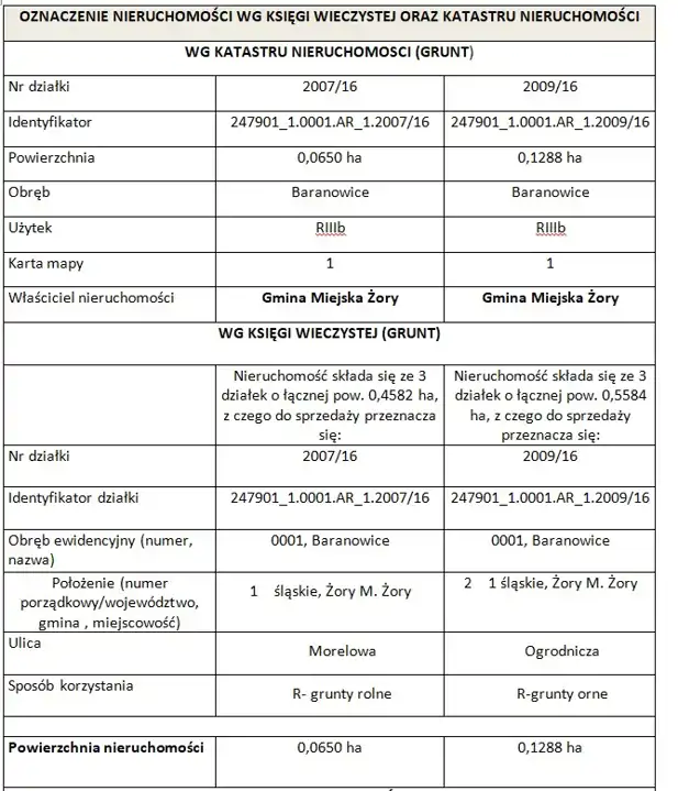 drugi nieograniczony przetarg ustny (licytacja) na sprzedaż prawa własności nieruchomości, stanowiącej własność Gminy Miejskiej Żory położonej w Żorach ul. Ogrodnicza/Morelowa (kompleks)