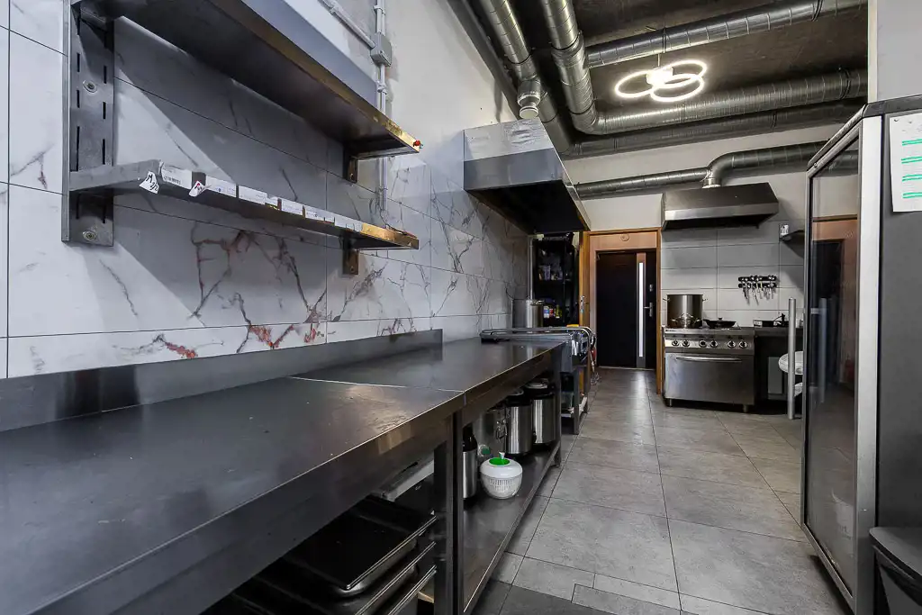 * kuchni ze sprzętem AGD (lodówki, zamrażarki, piec, zmywarka, itp.), stołami chłodniczymi i blatami roboczymi;