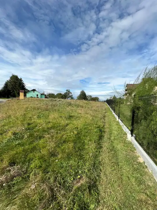 Działka jest płaska i nieogrodzona, natomiast sąsiaduje z już z gotowymi domami.