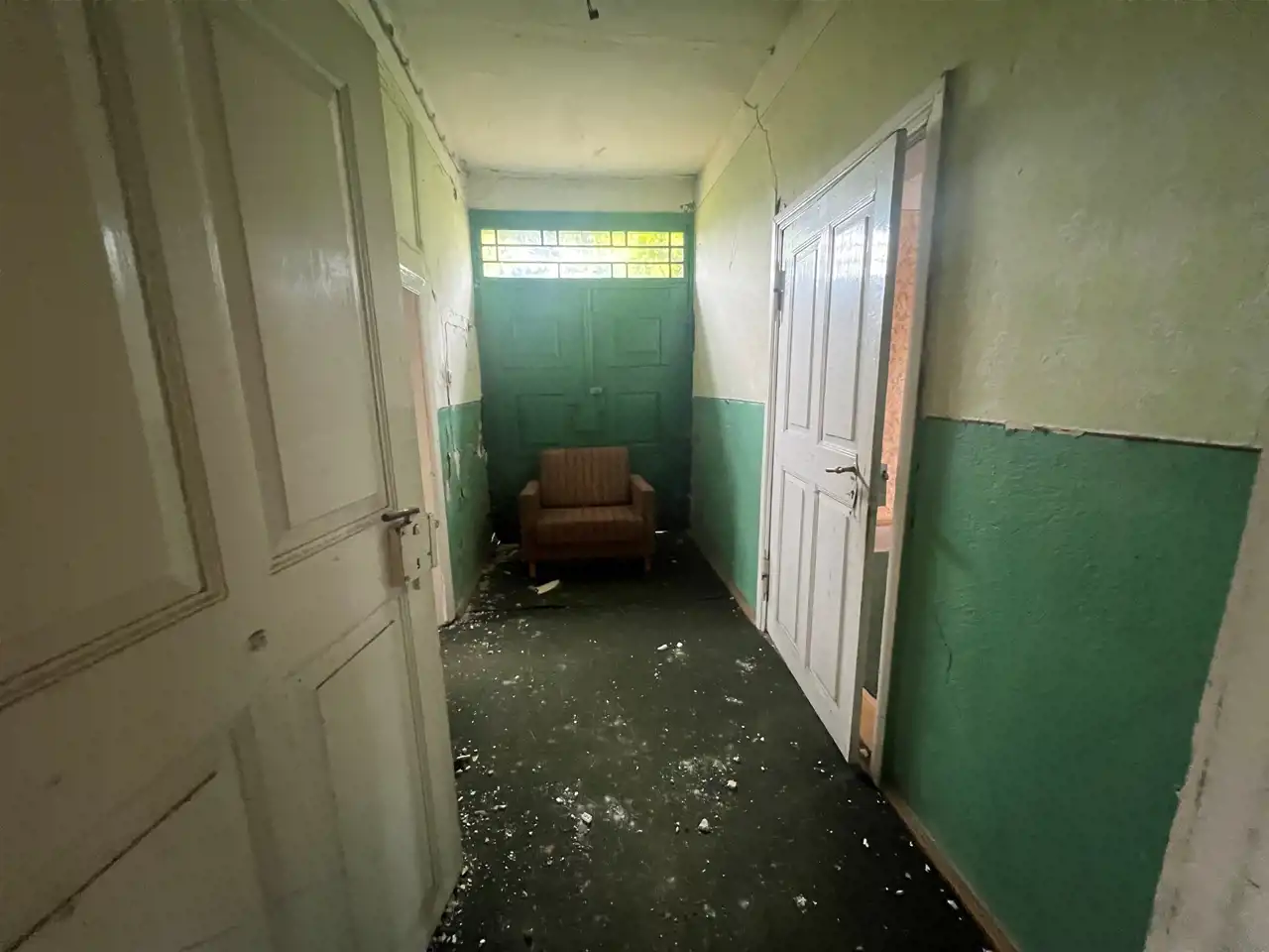 Od szczytu budynku wejście do domu przez piękne, drewniane drzwi wymagające renowacji, prowadzące do szerokiego korytarza z wejściem do dużego salonu, pokoi oraz kuchni. Układ pomieszczeń w amfiladzie. Dom skrywa aż pięć pokoi - w tym jeden bardzo duży pełniący funkcję salonu - dwie kuchnie, łazienkę, przedpokój, korytarz i ganek z drugim wejściem do domu od strony podwórka. Istnieje możliwość adaptacji dodatkowych pomieszczeń na poddaszu.