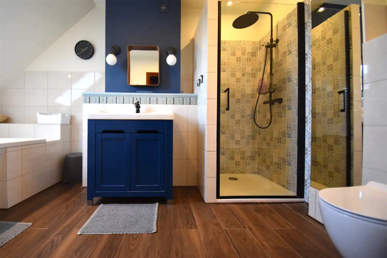 - łazienka z prysznicem