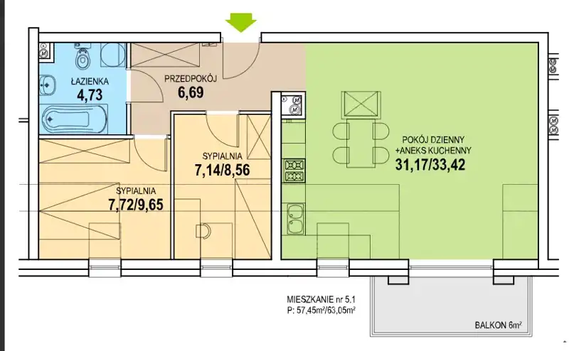 57.4 m2